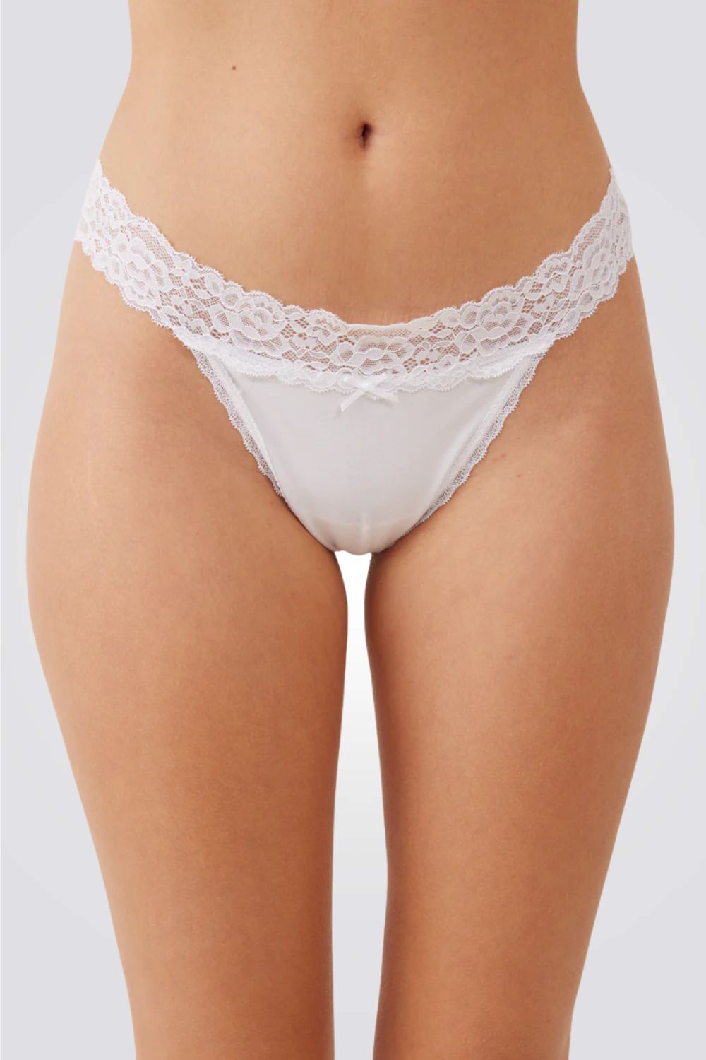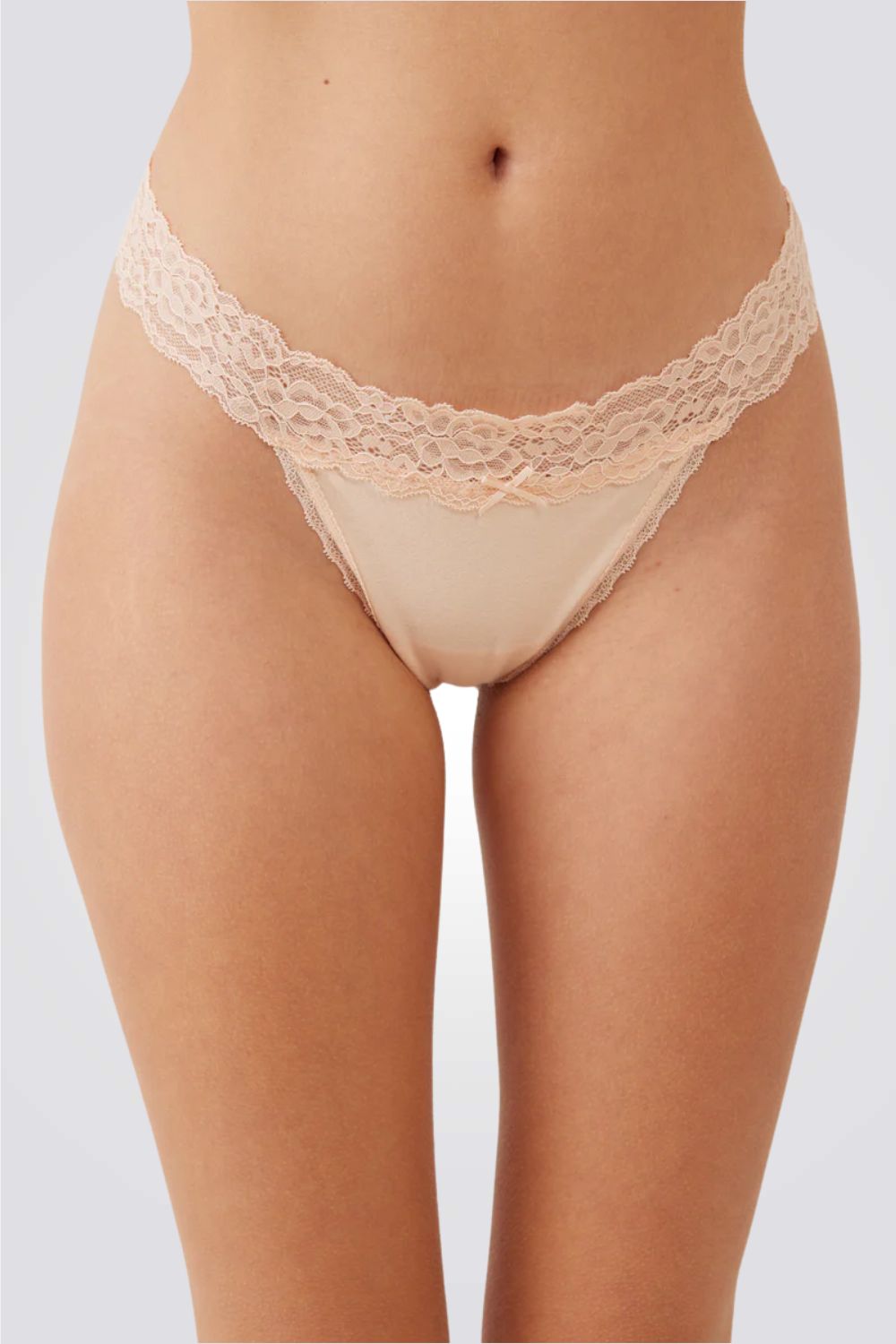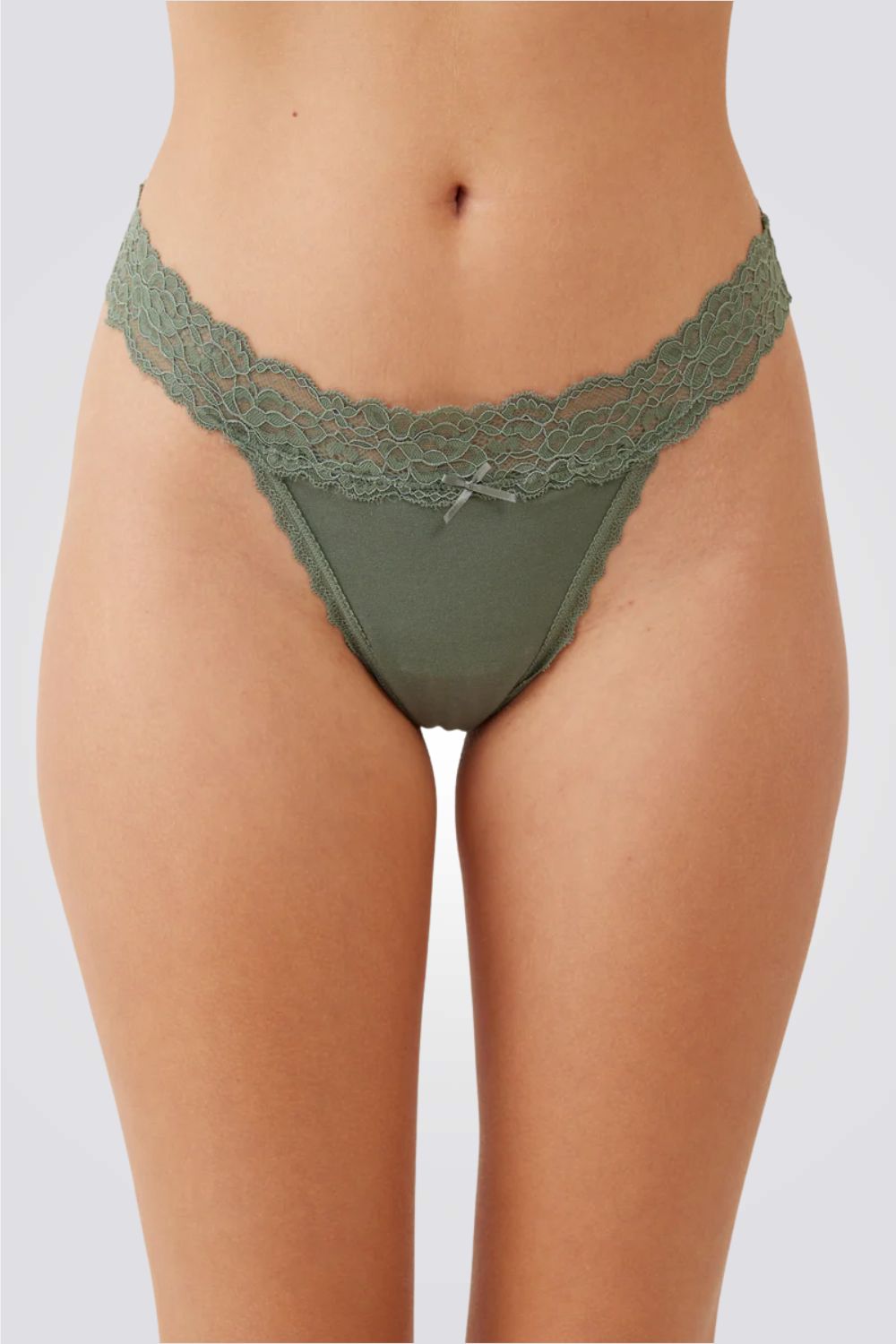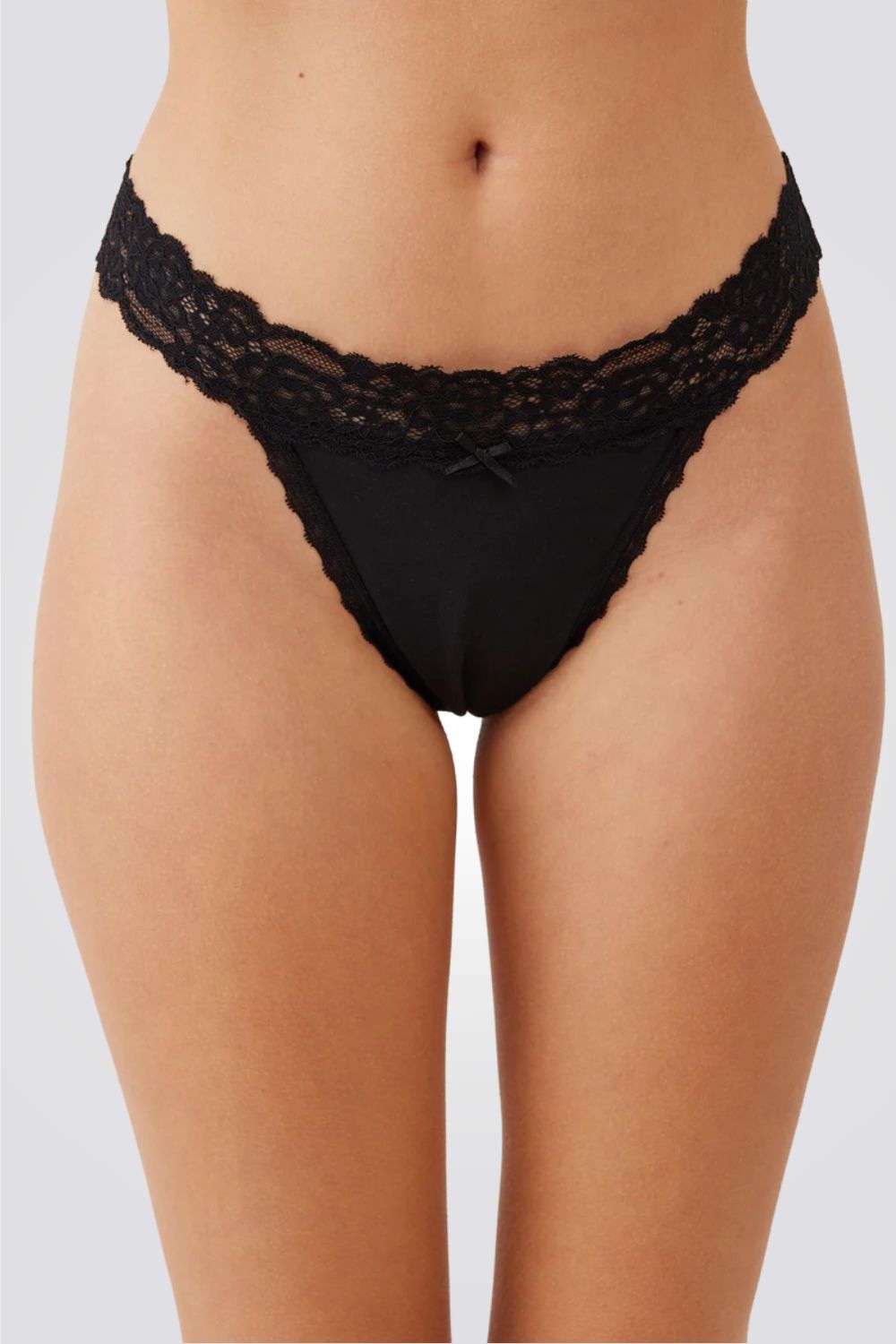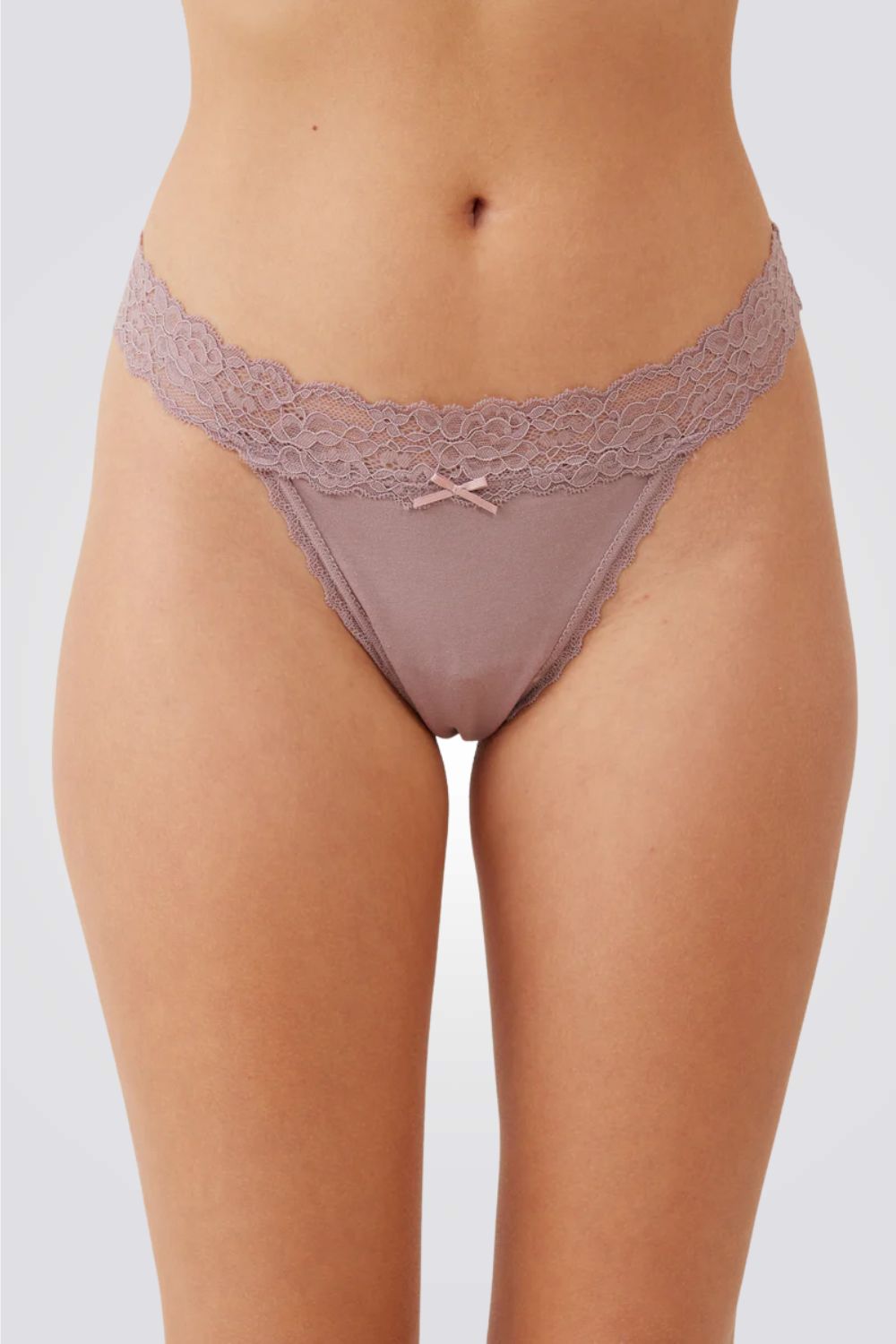 תחתוני כותנה בגזרת חוטיני בעיטור תחרה