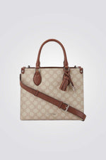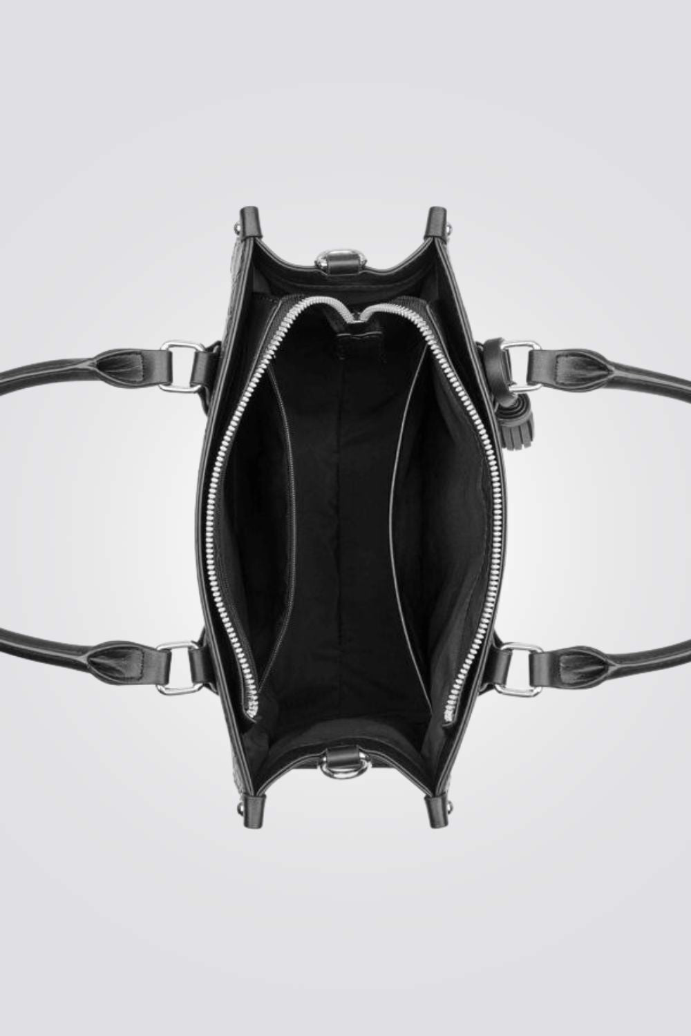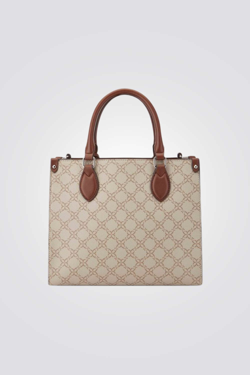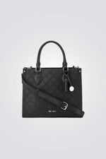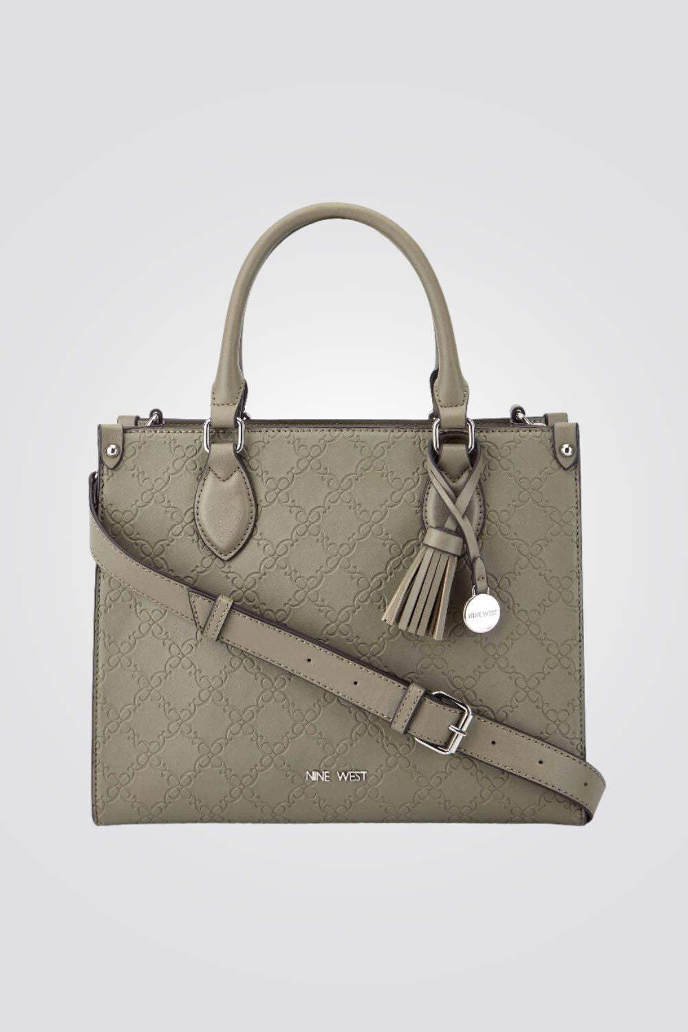 תיק יד לנשים מבית המותג NINE WEST, קלאסי במראה יוקרתי. מעוצב בדוגמא אלגנטית המשלבת פאטרן עדין. בעל רצועות נשיאה קצרות ורצועה נוספת לנשיאה באלכסון. בעל חלוקה פנימית פרקטית ונוחה. מתאים לשלל סגנונות לבוש ומבטיח לשדרג כל לוק אלגנטי.