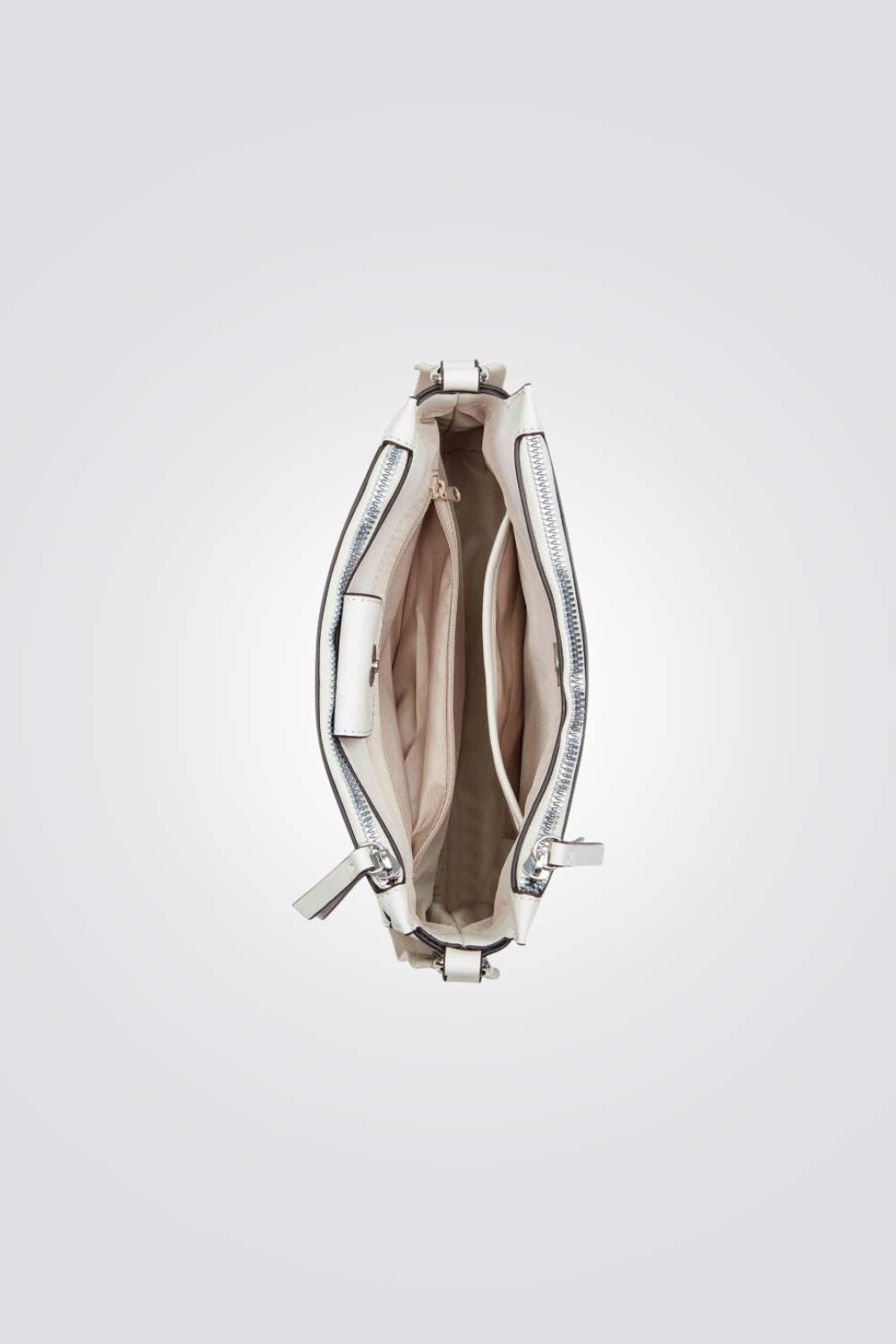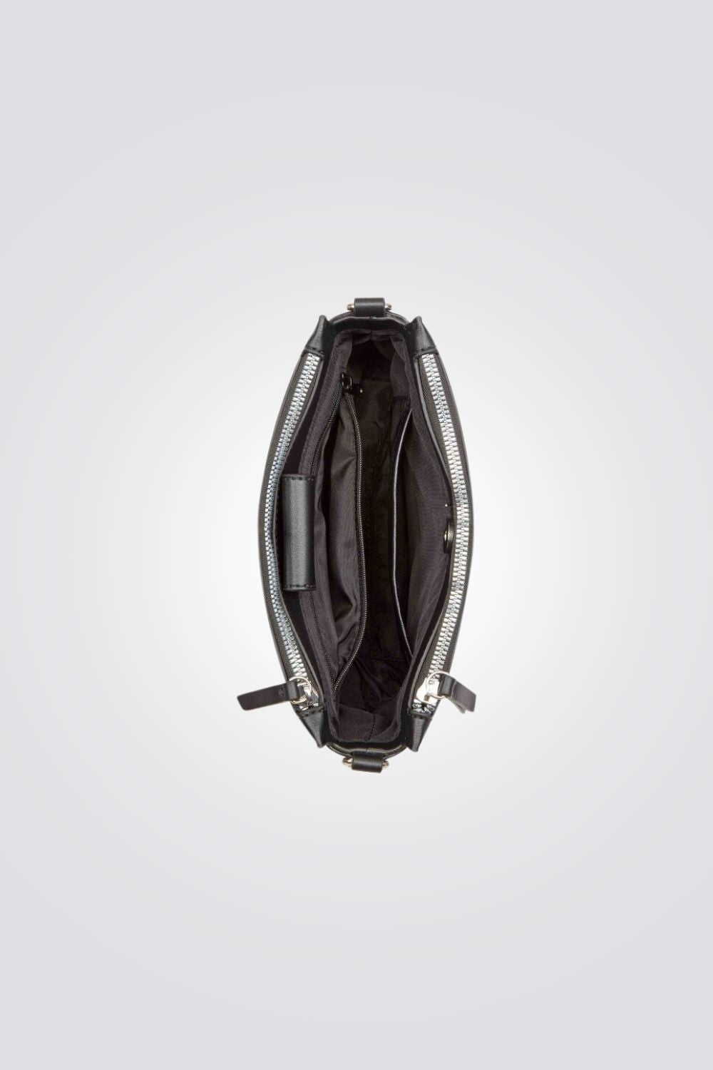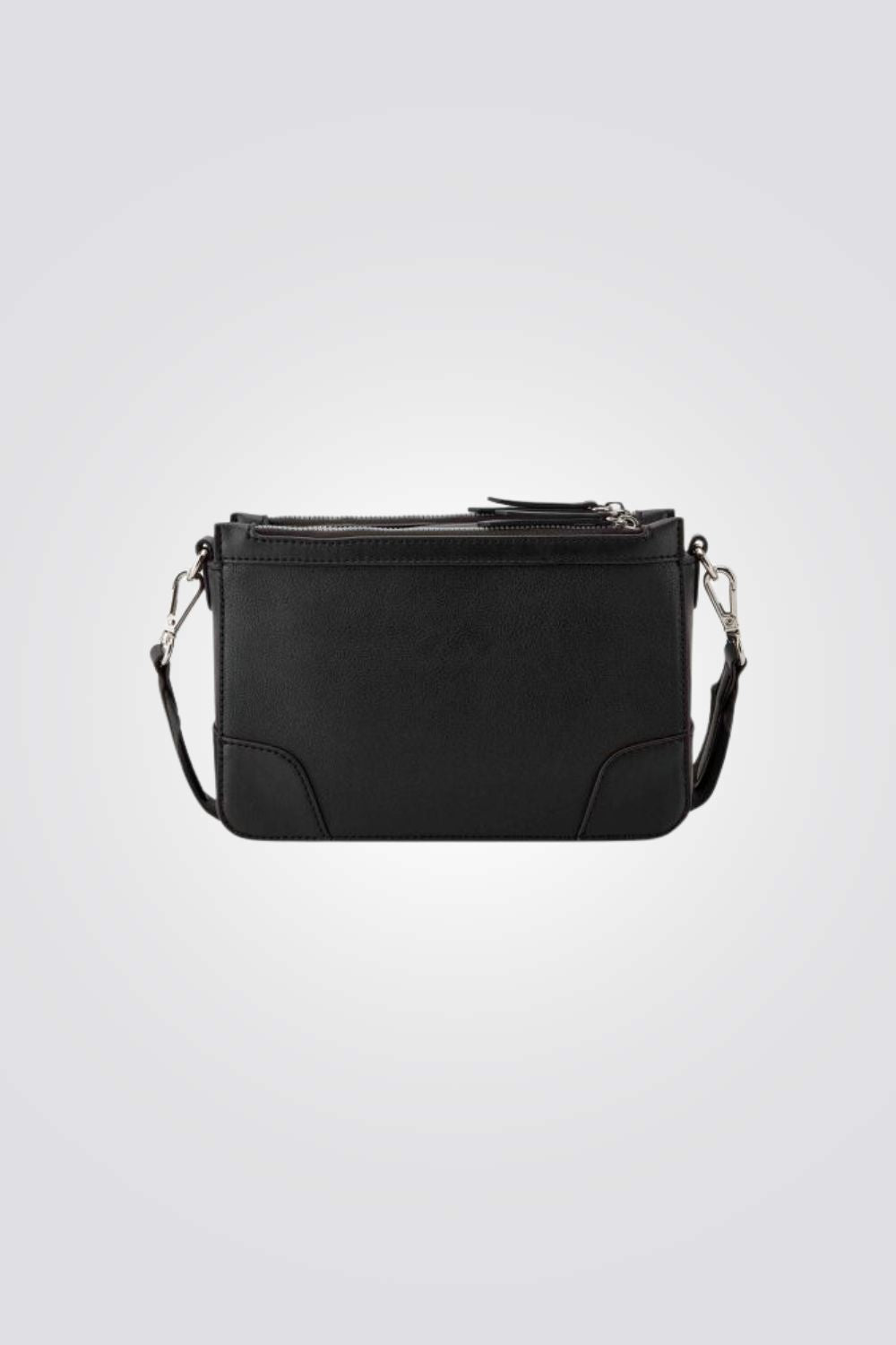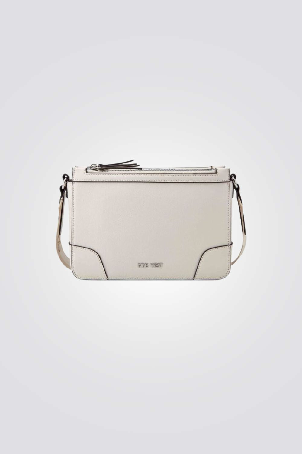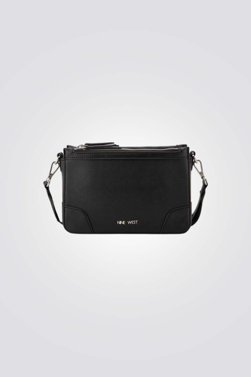 תיק צד לנשים מבית המותג NINE WEST, דמוי עור בעיצוב קלאסי ואופנתי, עם תא ראשי וסגירת כפתור, ועוד שני תאים חיצוניים וסגירת רוכסן, ורצועת צד דקה .