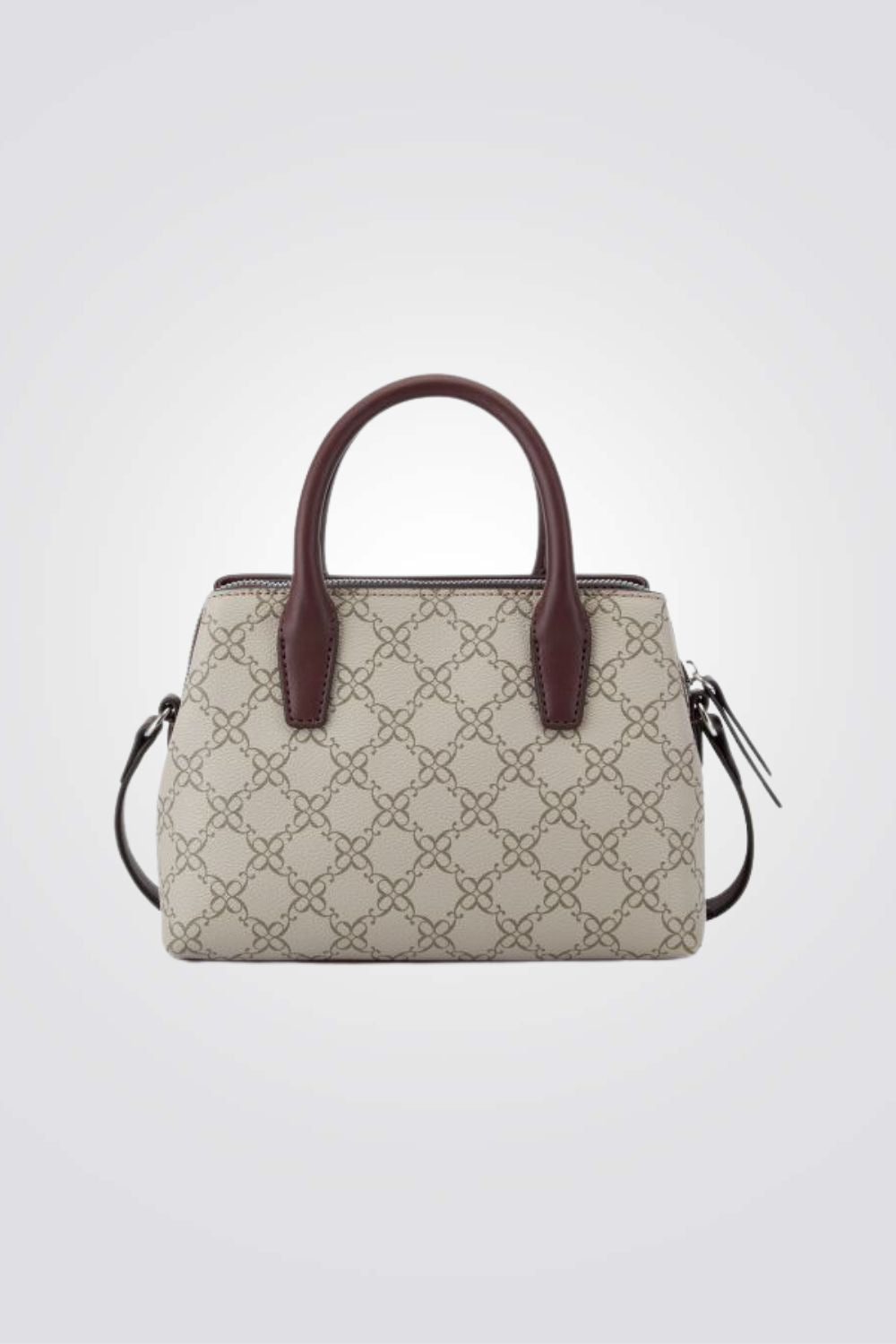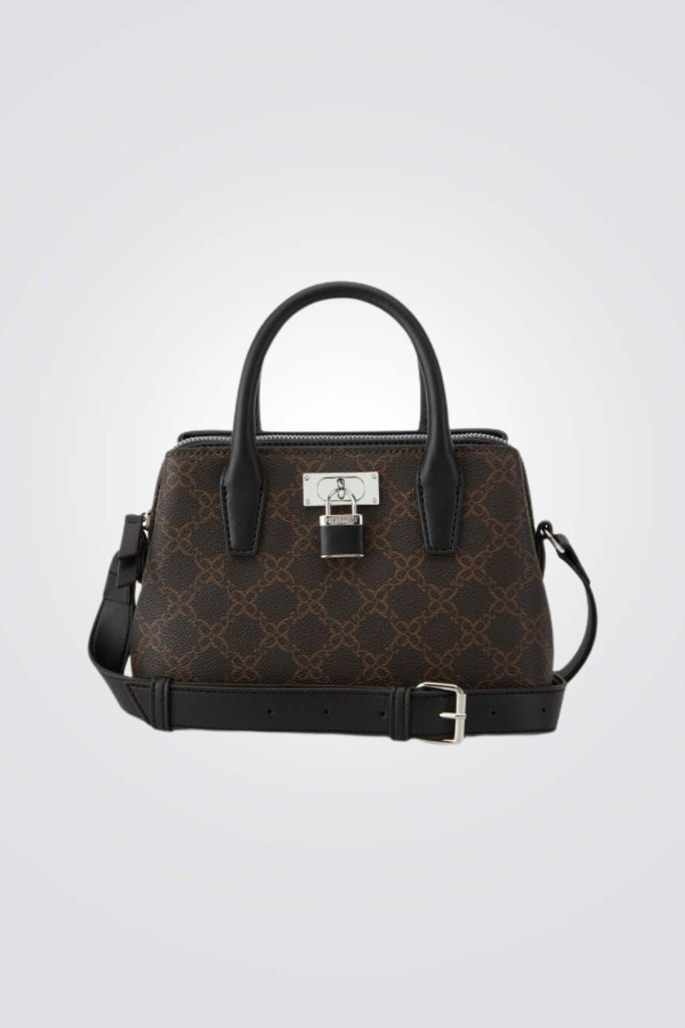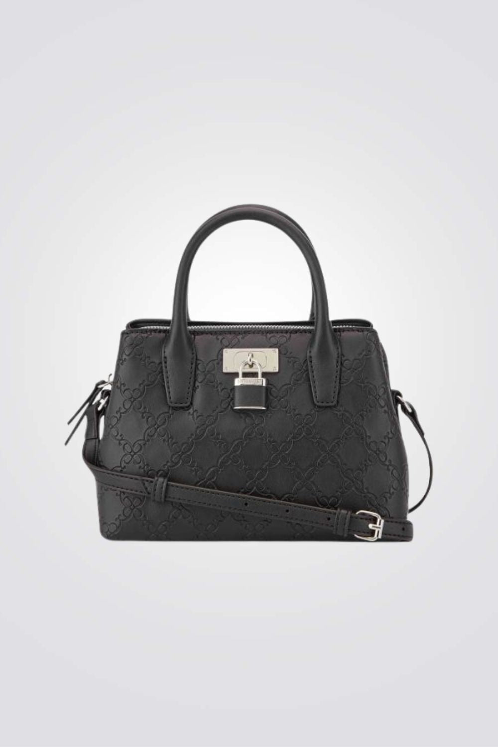 תיק צד אלגנטי לנשים מבית המותג NINE WEST עם פאטרן גאומטרי, גדול ונוח לאחסון. בעל רצועות נשיאה קצרות ורצועת נשיאה ארוכה מתכווננת, עם סוגר כסוף בשילוב מנעול מרשים ליופי.