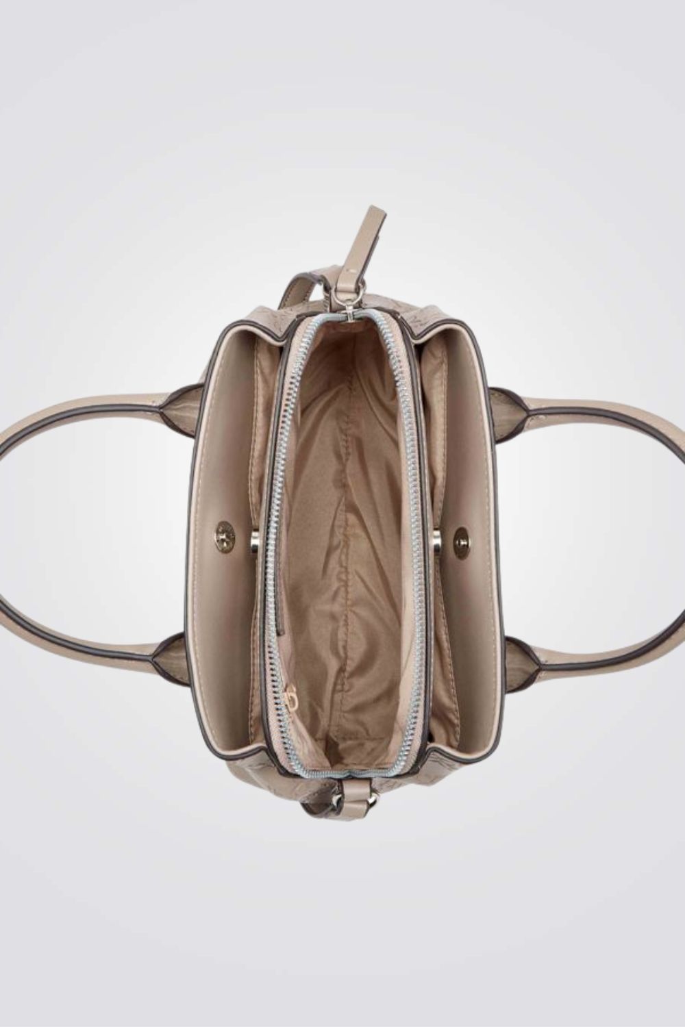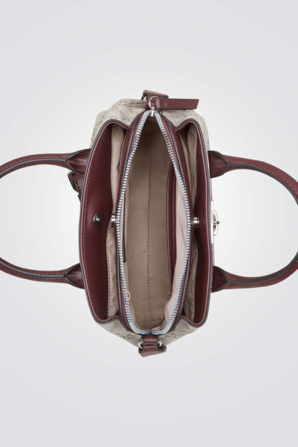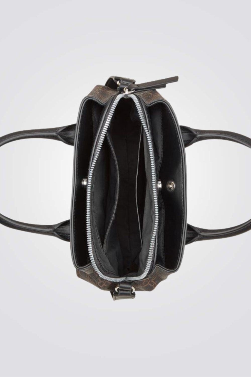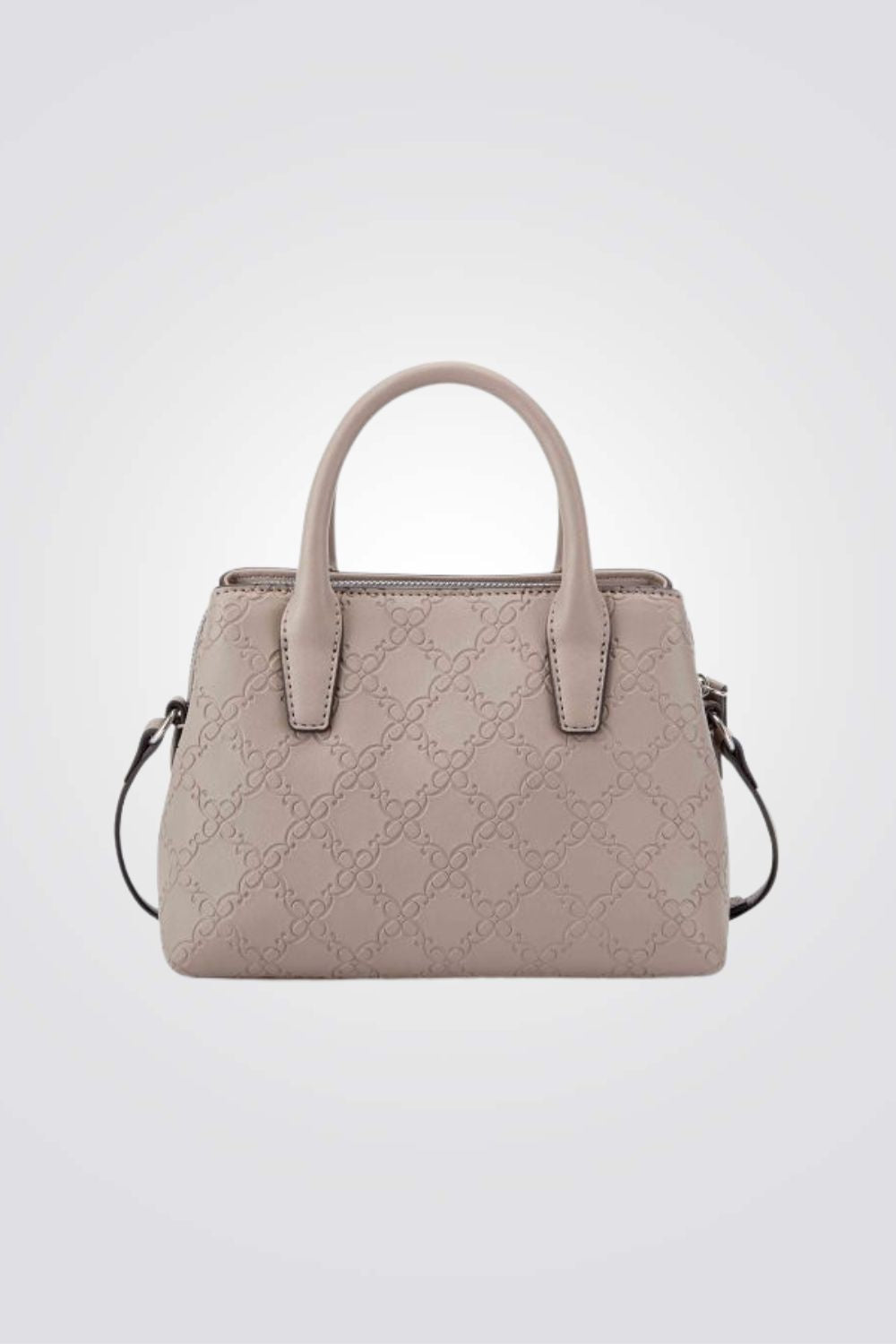 תיק צד אלגנטי לנשים מבית המותג NINE WEST עם פאטרן גאומטרי, גדול ונוח לאחסון. בעל רצועות נשיאה קצרות ורצועת נשיאה ארוכה מתכווננת, עם סוגר כסוף בשילוב מנעול מרשים ליופי.