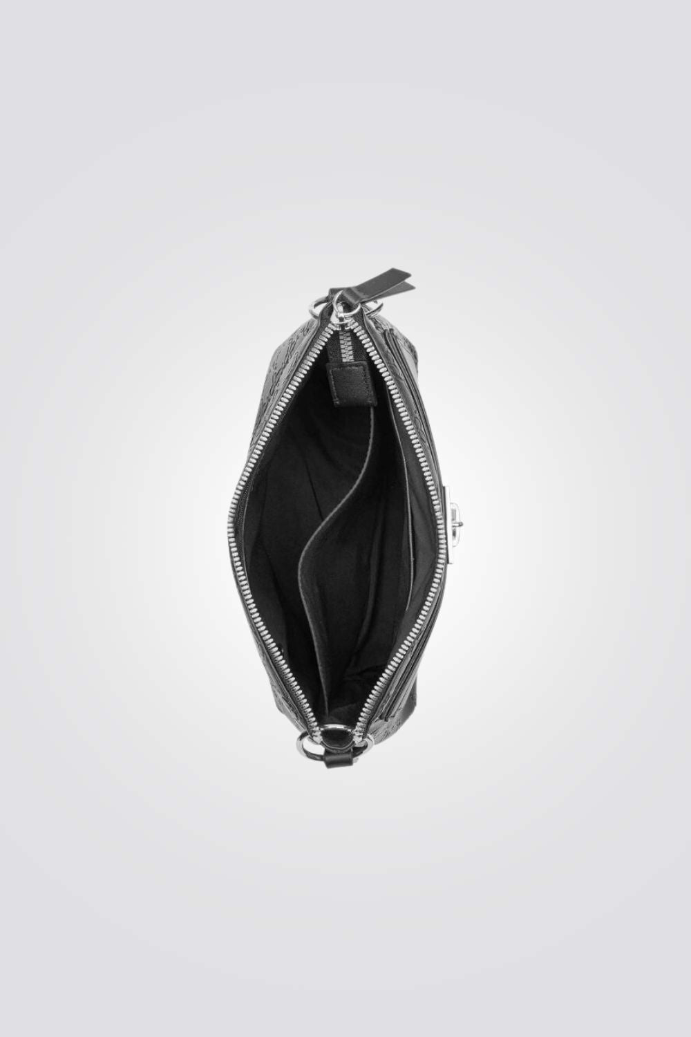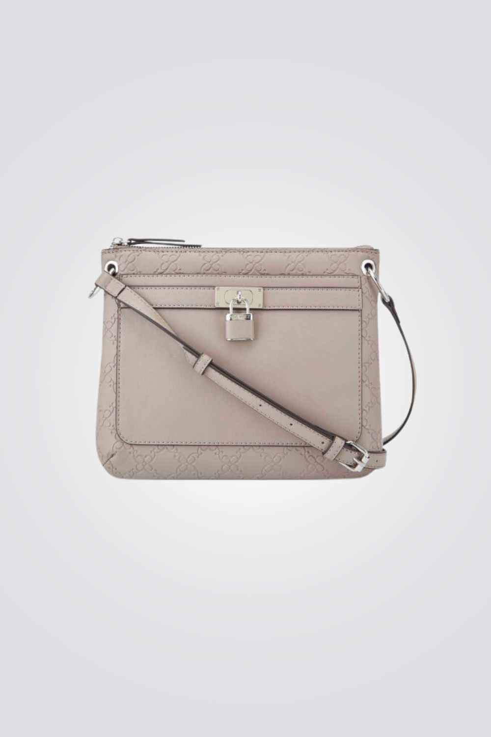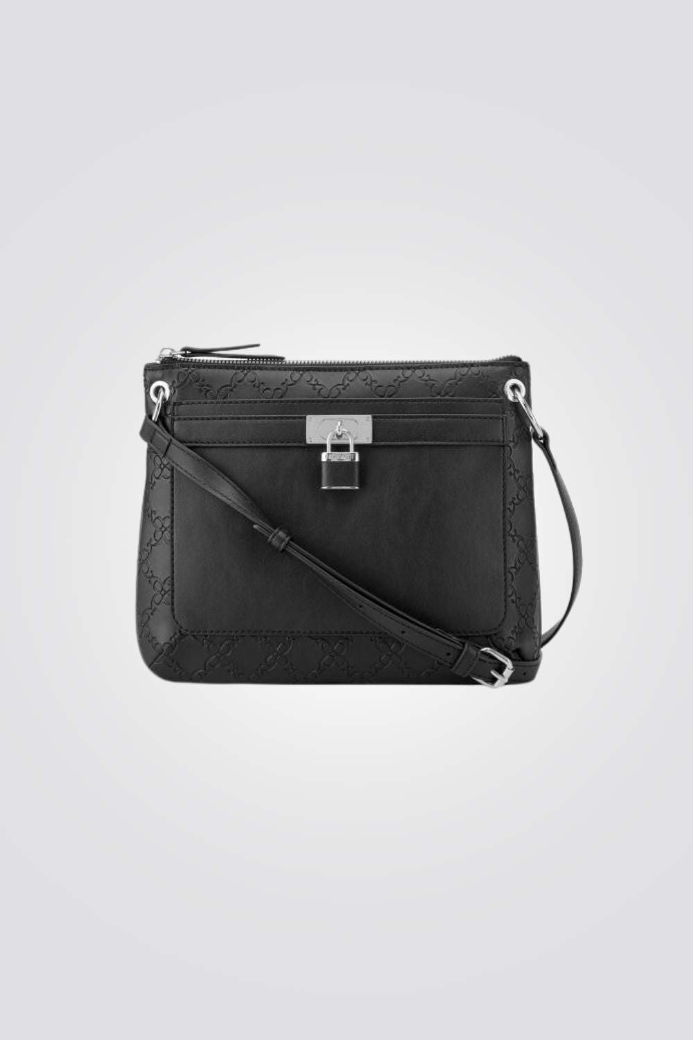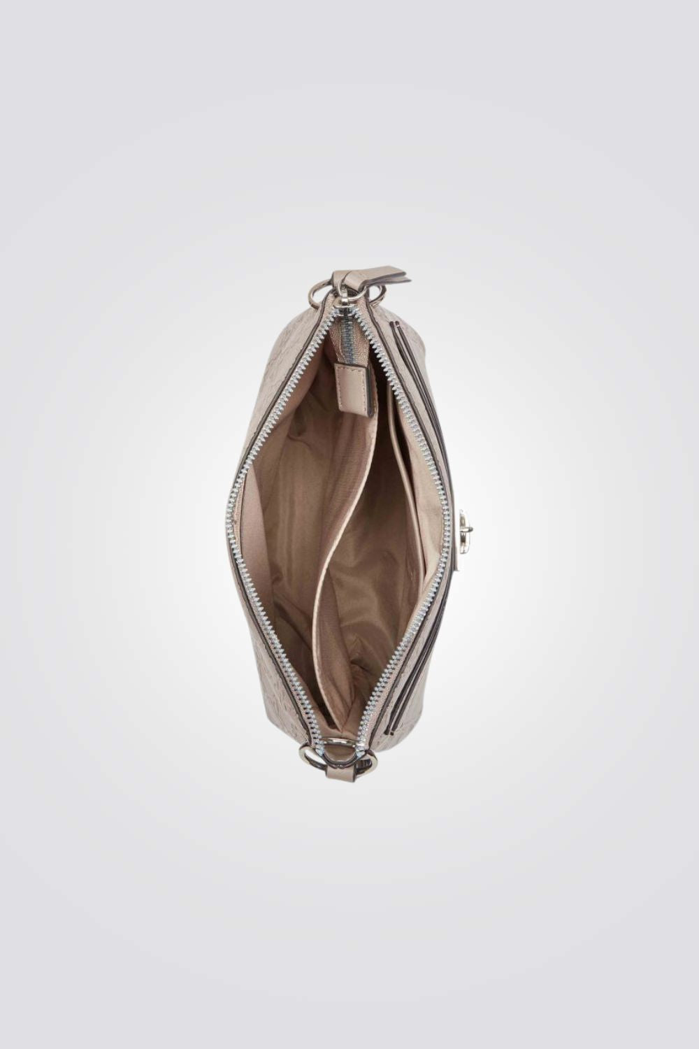 תיק צד לנשים מבית המותג NINE WEST, דמוי עור בעיצוב קלאסי ואופנתי עם טוויסט יחודי המשלב דוגמא פרחונית עדינה ואזור חלק. בגודל בינוני המספק שפע של מקום לאחסון נוח. משלב אלמנט מתוכשט ומנעול מרשים ליופי, ורצועת נשיאה ארוכה.