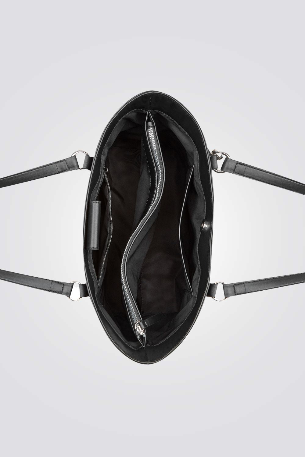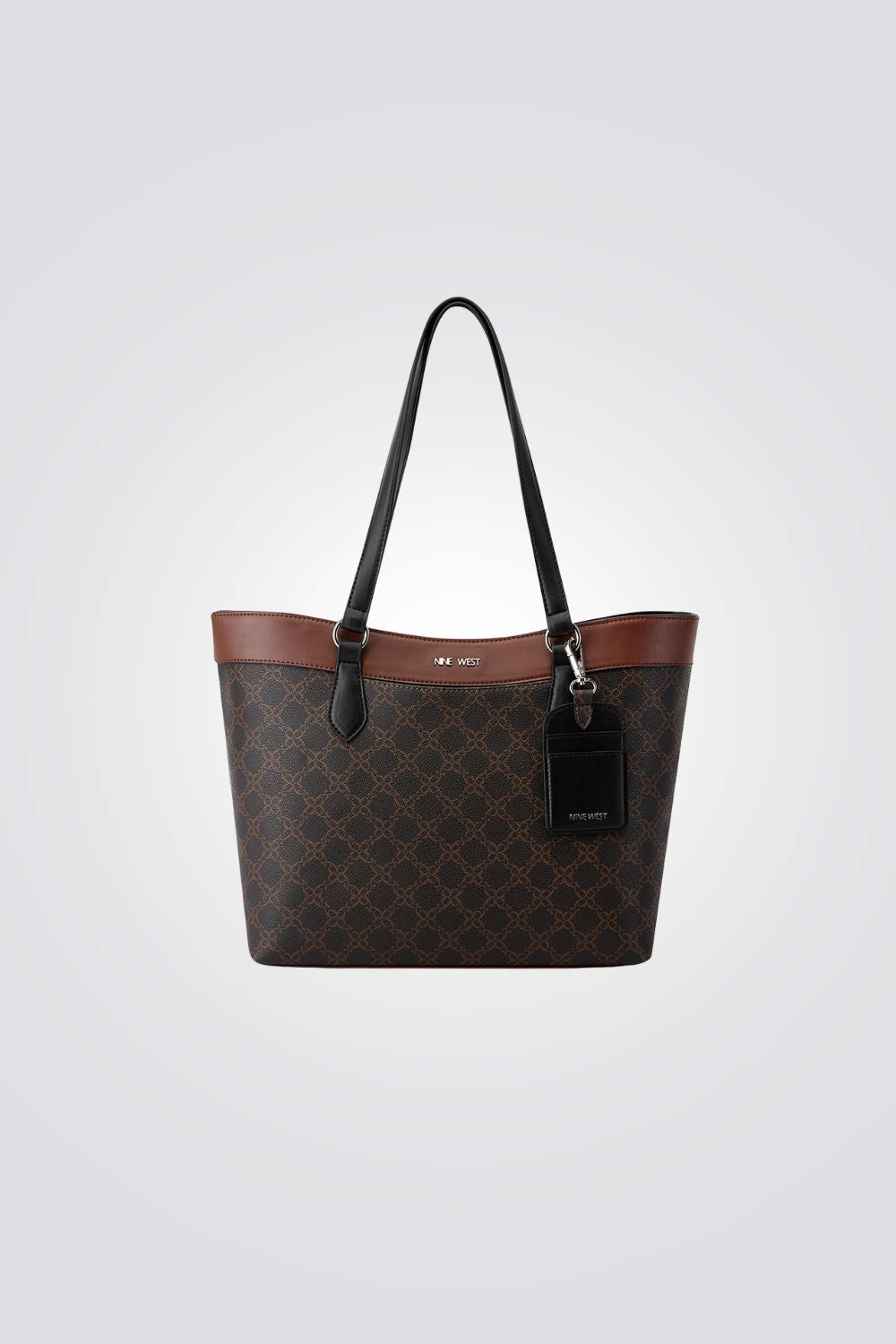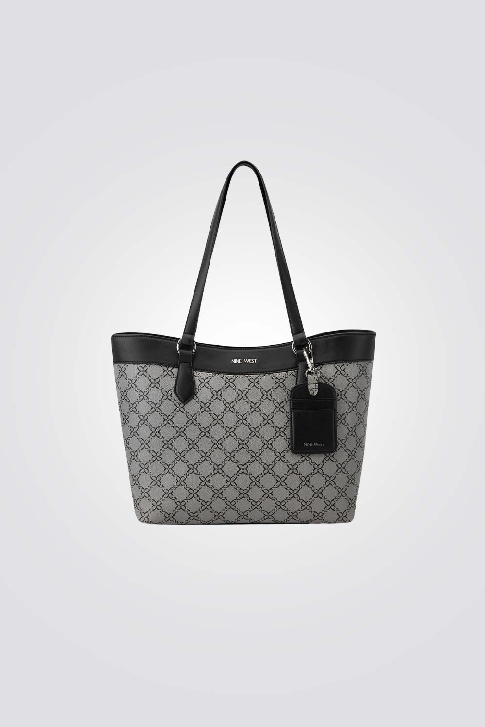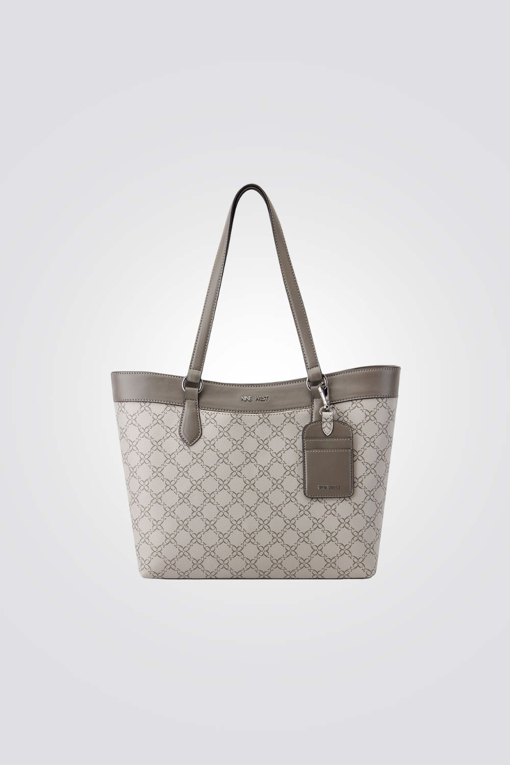 תיק יד לנשים מבית המותג NINE WEST, בעיצוב אלגנטי, שלושה תאים עם סגירת רוכסן וכפתור, ושני תאים פנימיים.