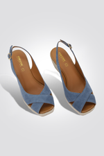 סנדלים לנשים SANDALI PELLE TACCO SUP. 3 CM בצבע כחול