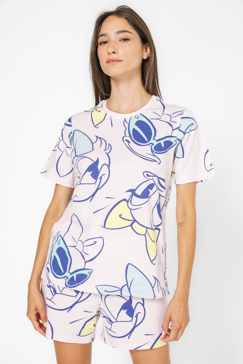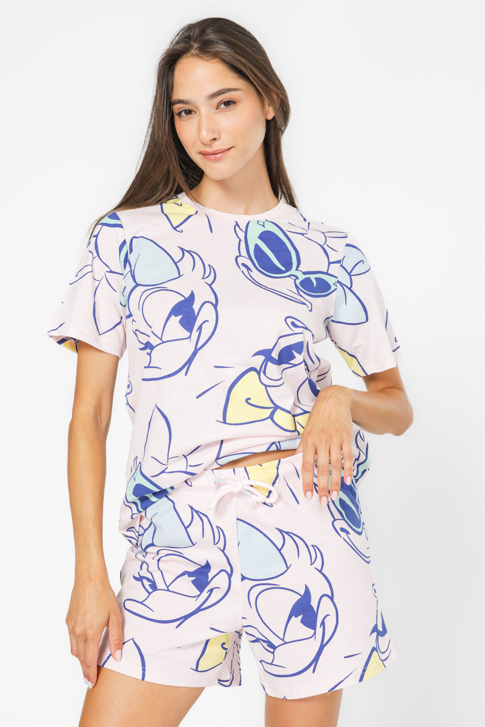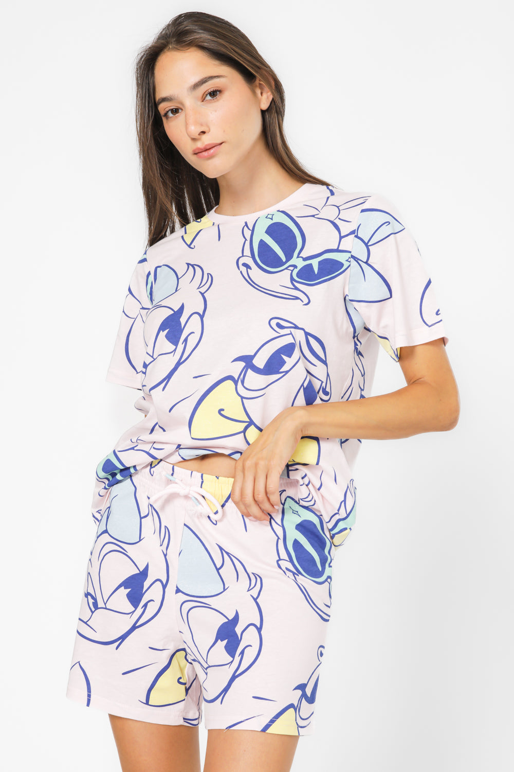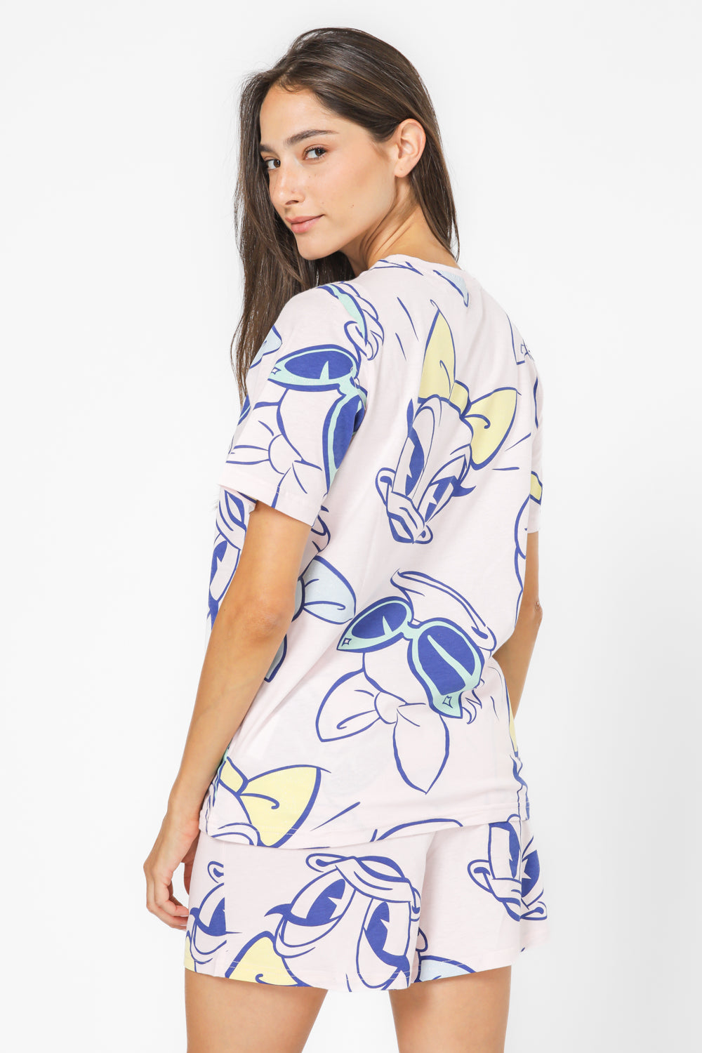 סט פיג’מה קצרה DAISY בצבע ורוד