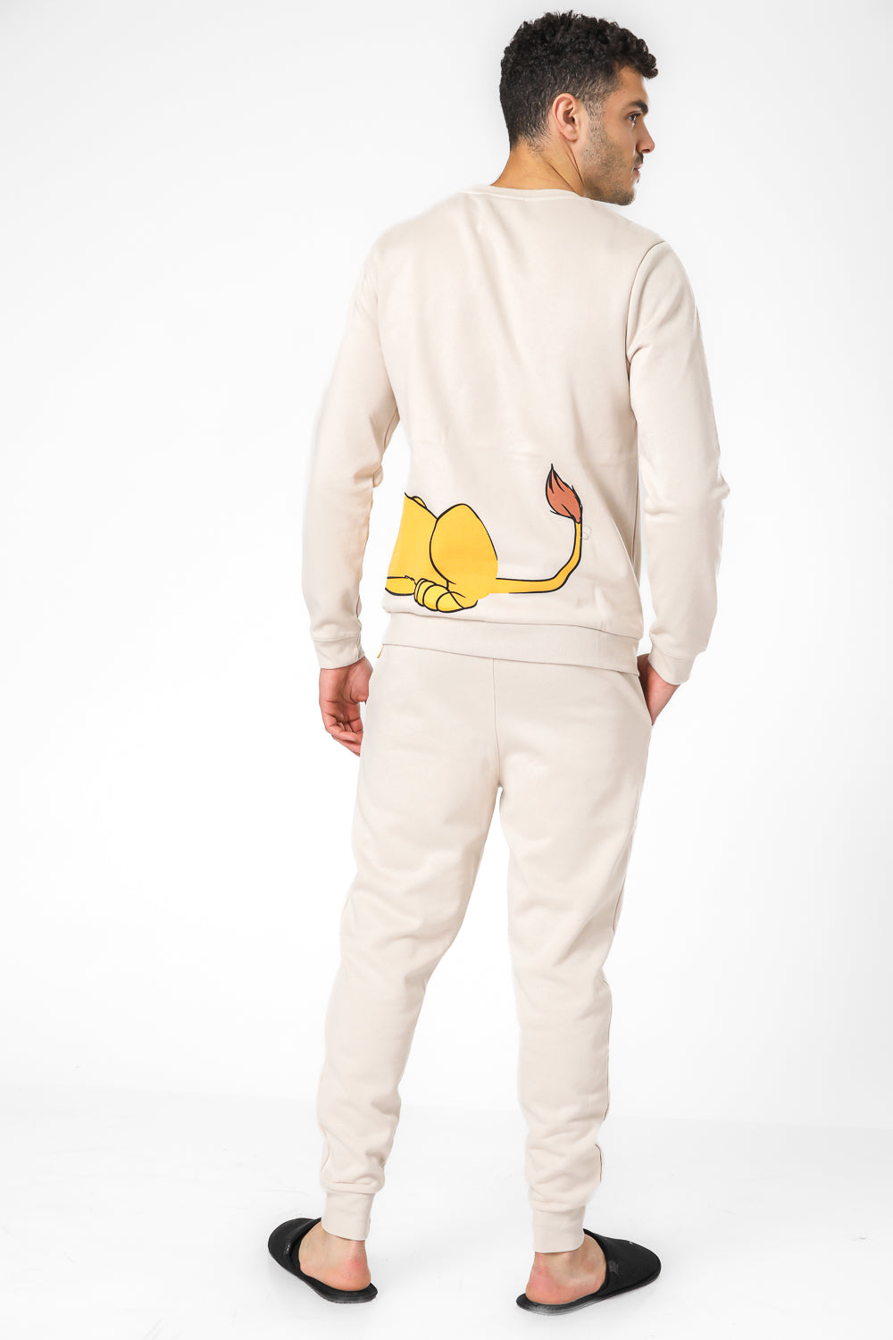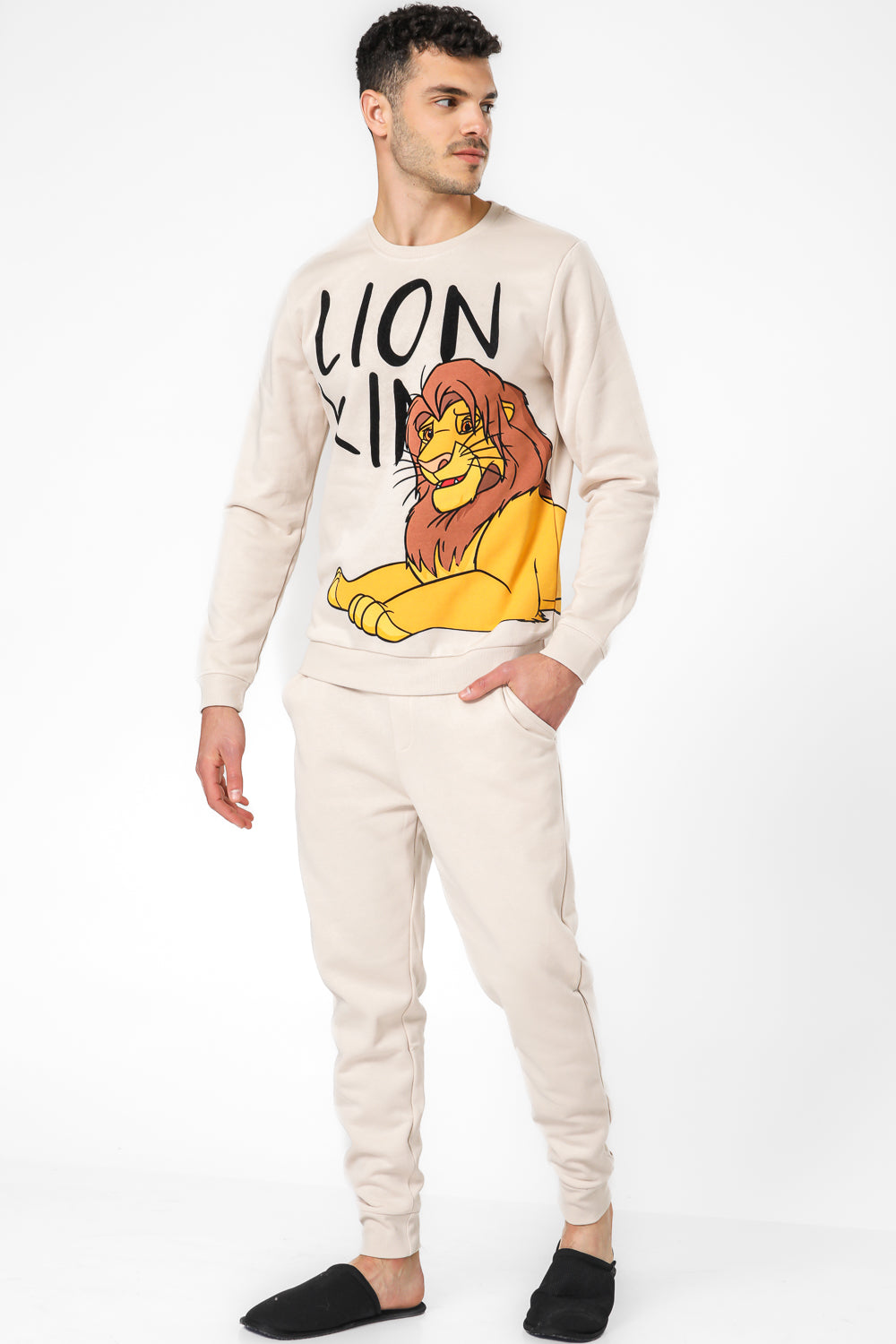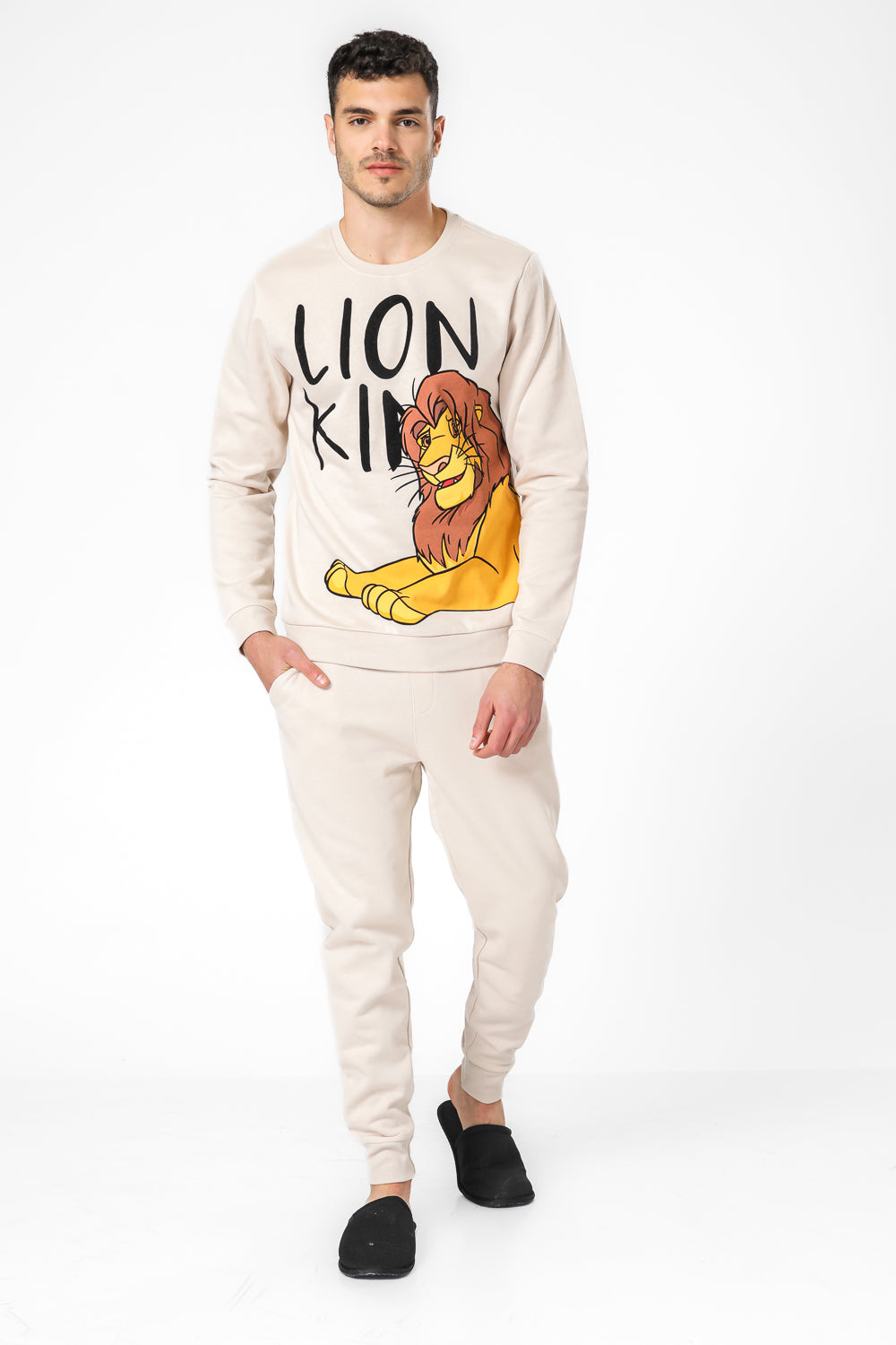 סט פיג'מה לגבר מבית המותג DISNEY העשויה מבד פוטר רך ומחמם עם הדפס של מלך האריות. חולצה עם צווארון עגול, שרוולים ארוכים וסיומת מנג’ט ומכנסיים ארוכים עם גומי במותניים וסיומת מנג’ט.