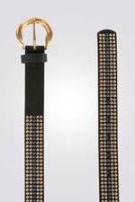 חגורה מבית המותג MORGAN, משובצת ומתכווננת עם אבזם מתכת.