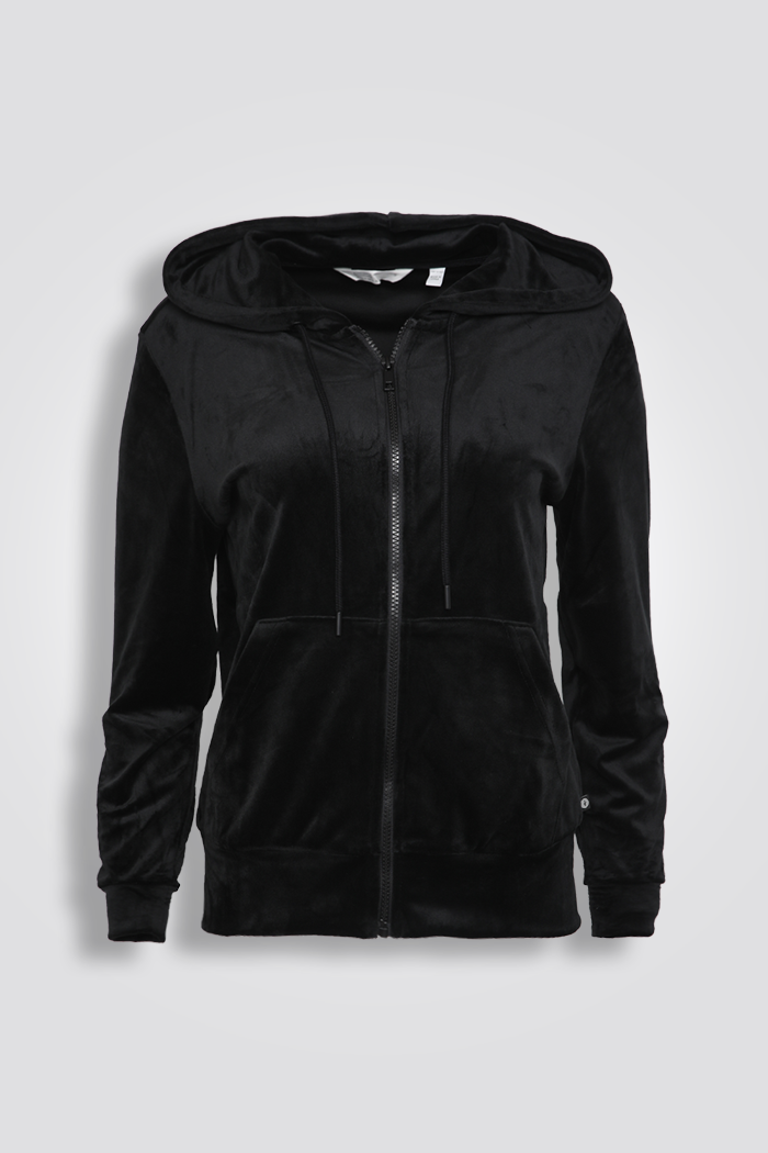 עליונית קטיפה עם קפוצ’ון בצבע שחור