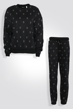 סט פיג'מת מעבר מבית המותג DELTA העשוי מבד פוטר רך ומחמם עם הדפס. חולצה עם צווארון עגול ושרוולים ארוכים עם סיומת מנג’ט ומכנסיים ארוכים עם גומי במותניים וסיומת מנג’ט.