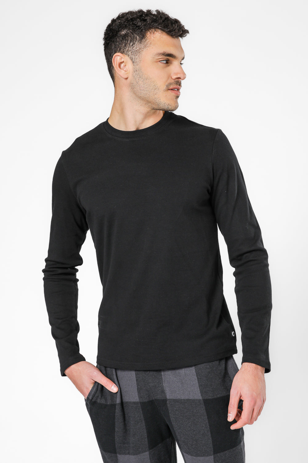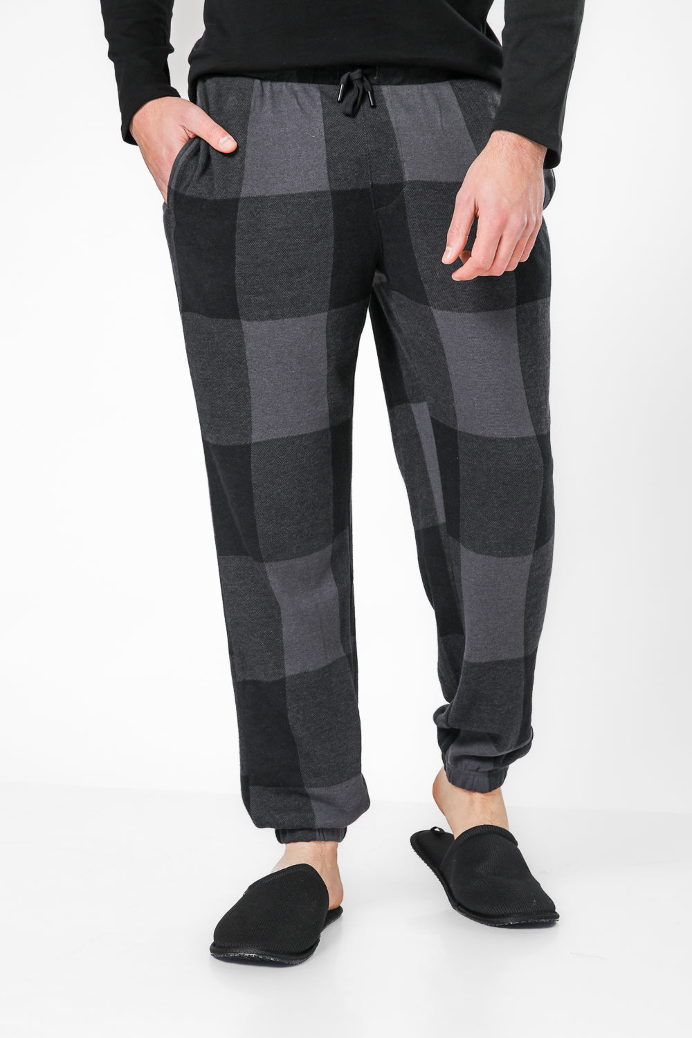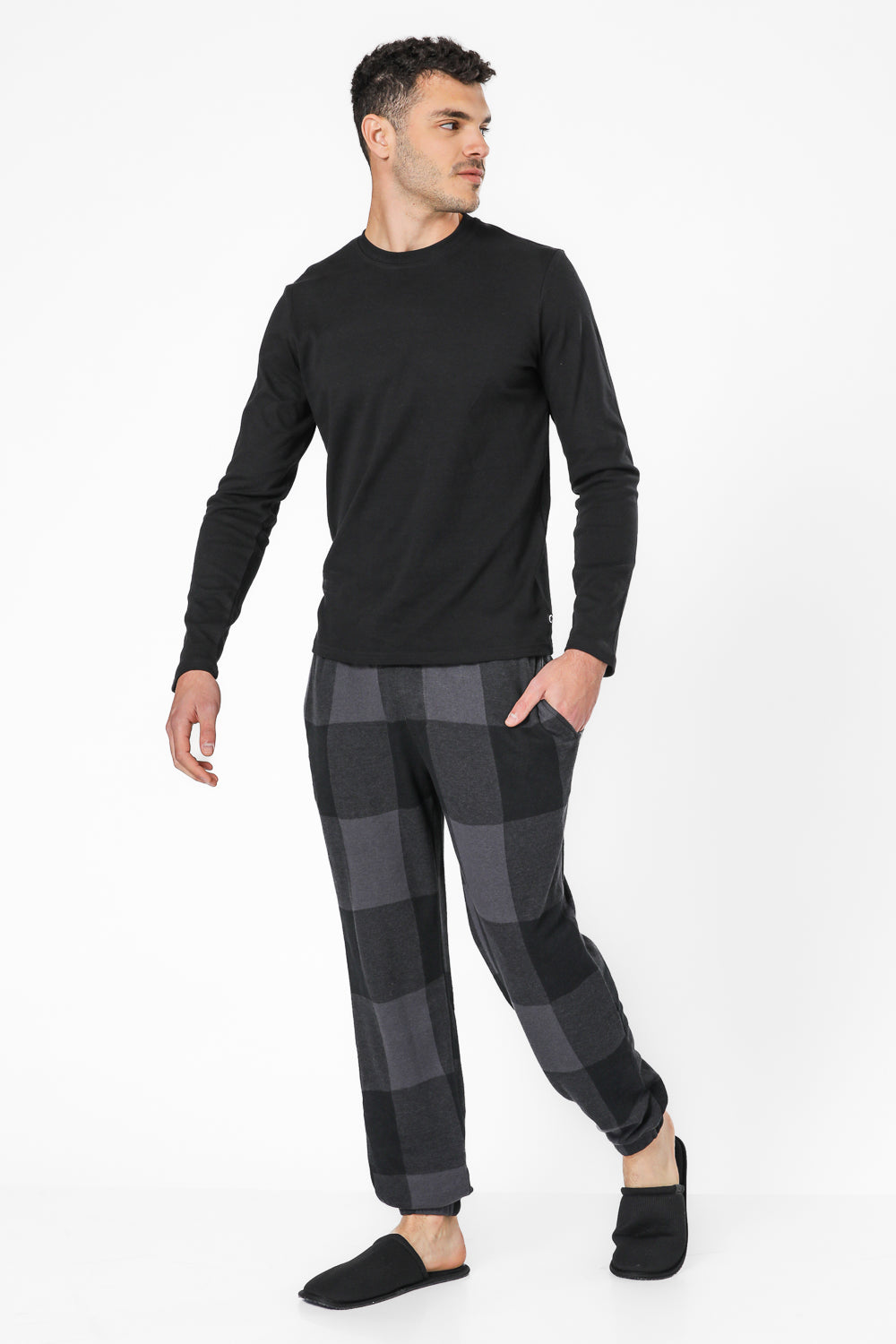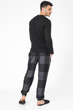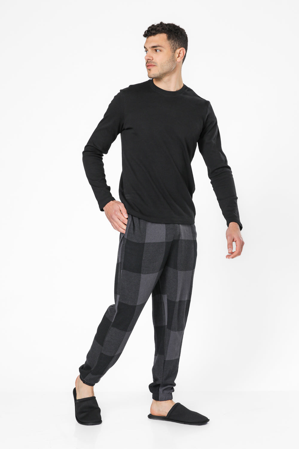 סט פיג’מה אינטרלוק ופלנל לגבר בצבע שחור