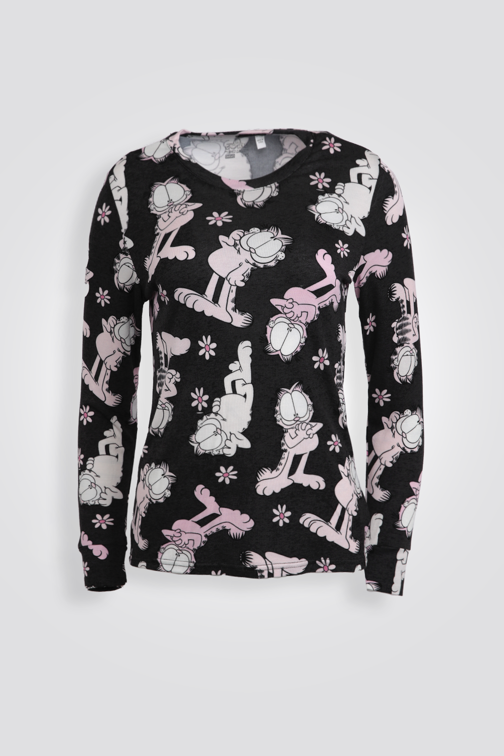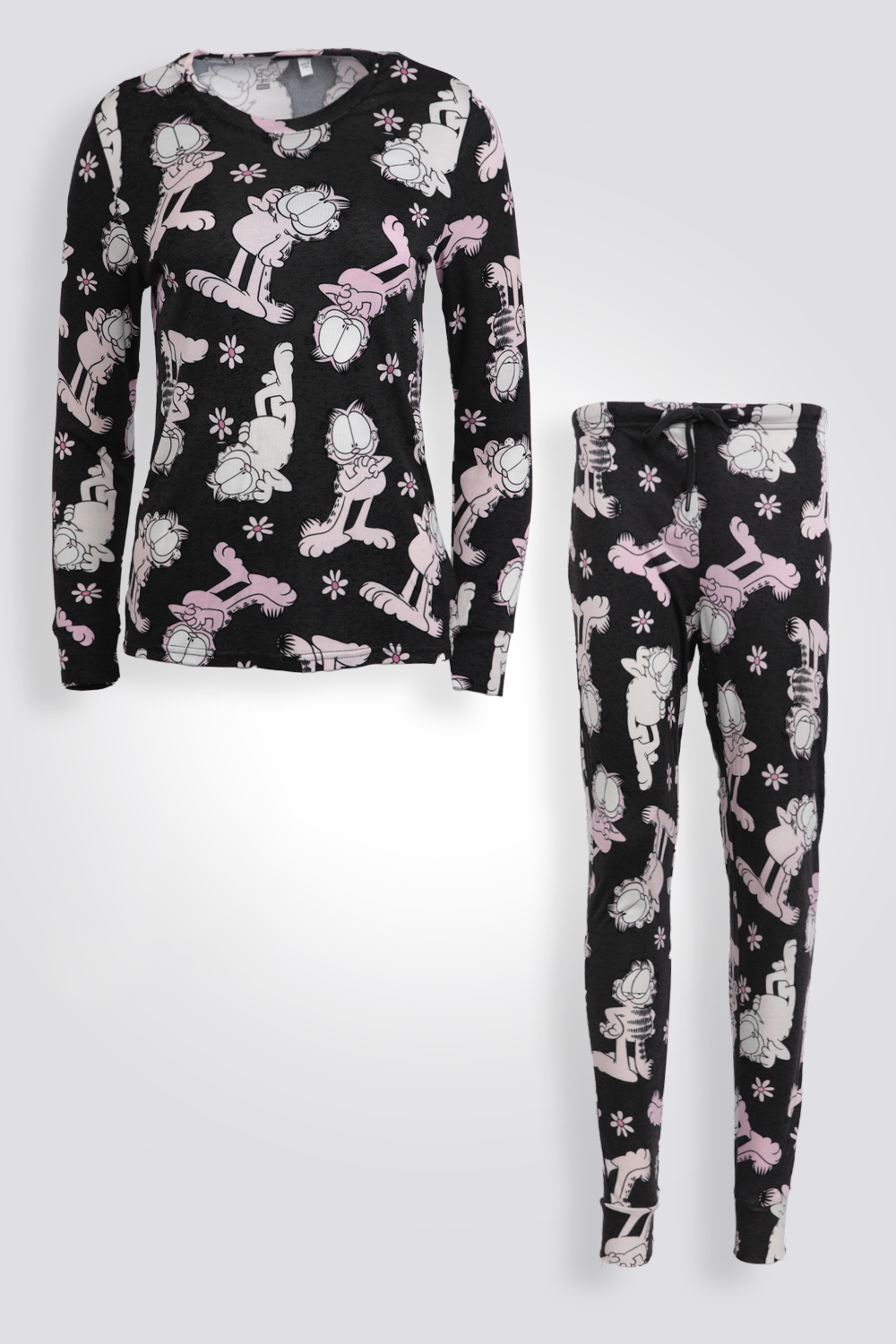 סט פיג'מה לנשים לעונת החורף והמעבר מבית המותג NICKELODEON העשוייה מבד אינטרלוק נעים ודק לעונת המעבר עם הדפס של גארפילד. חולצה עם צווארון עגול ושרוולים ארוכים עם סיומת מנג’ט ומכנסיים ארוכים עם גומי במותניים וסיומת מנג’ט.