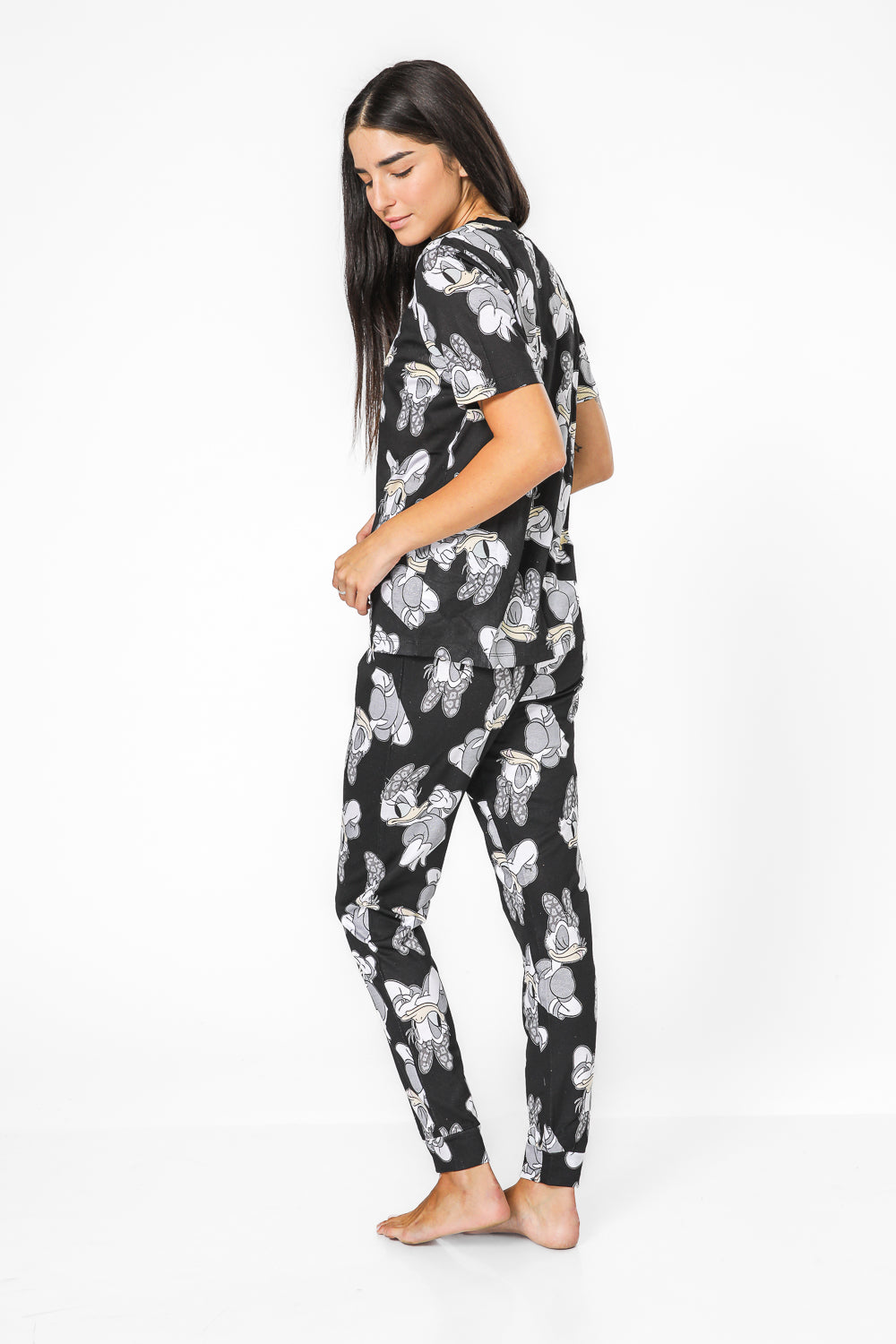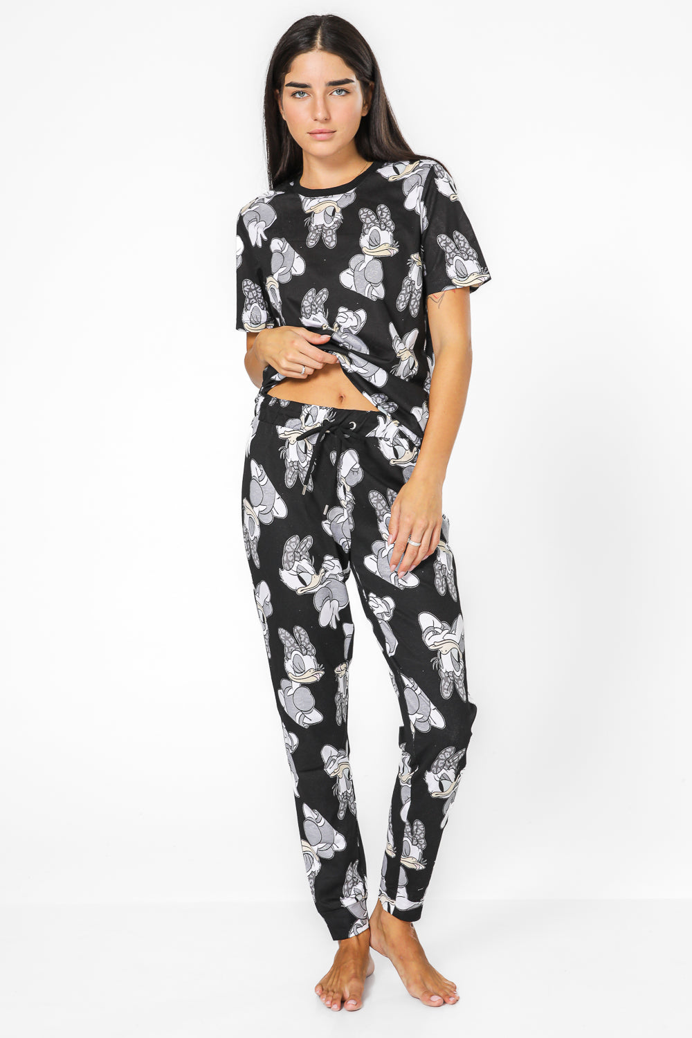 סט פיג'מה קצרה מבית המותג DELTA העשוי מבד סינגל ג’רסי נעים בהדפס דייזי מנומרת. חולצה קצרה עם צווארון עגול ומכנסיים ארוכים תואמים עם גומי במותניים וסיומת מנג’ט.