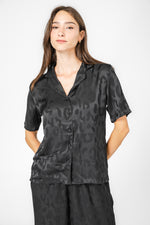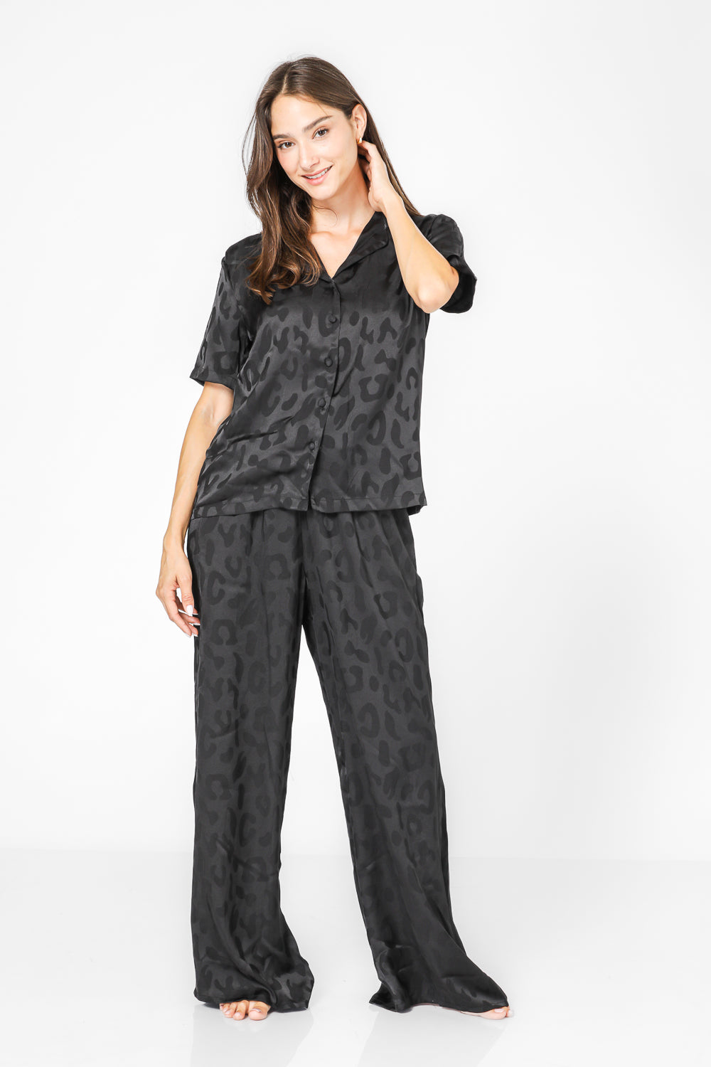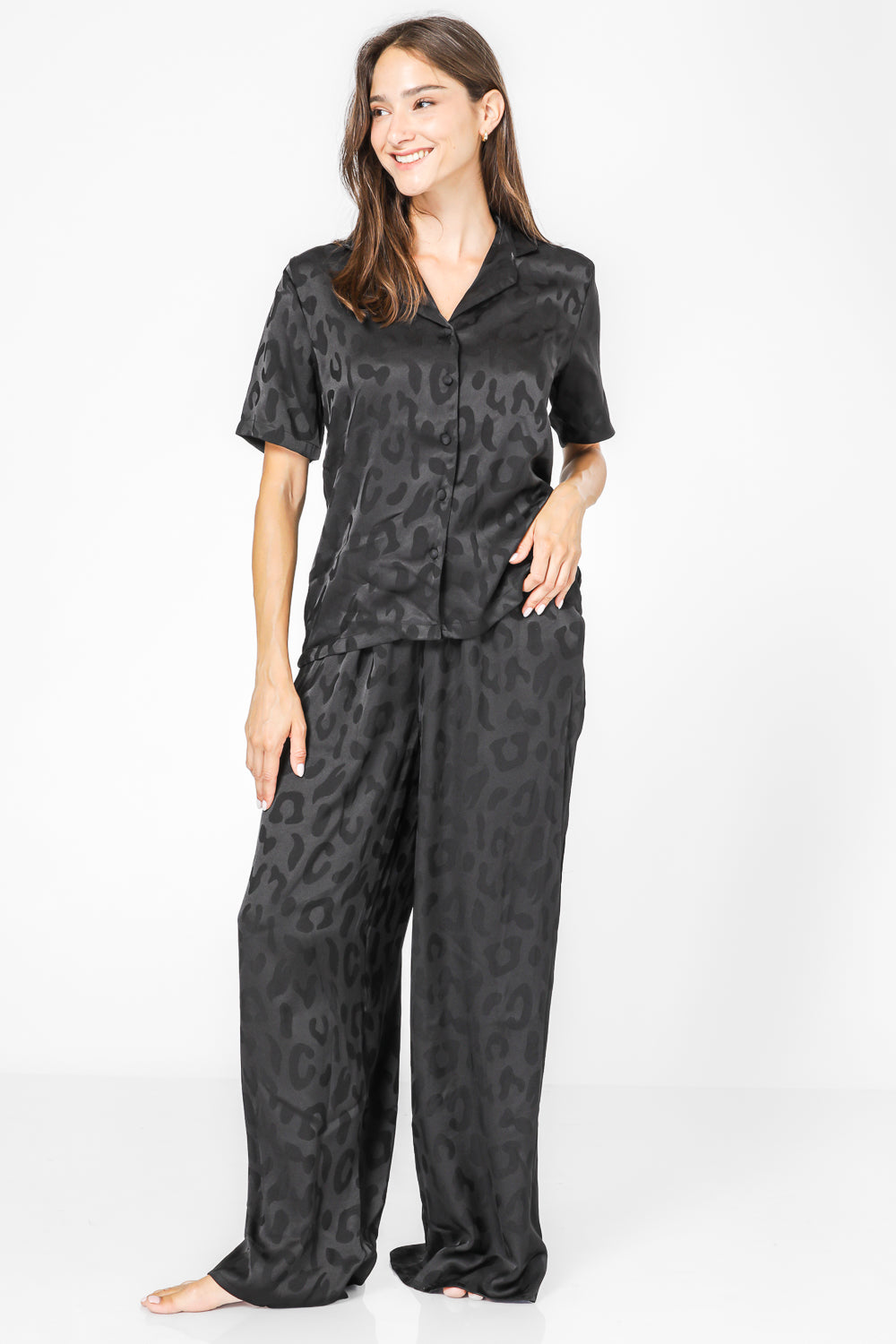 סט פיג’מה מכופתרת LEOPARD בצבע שחור