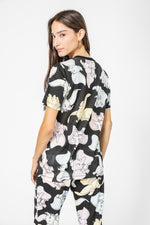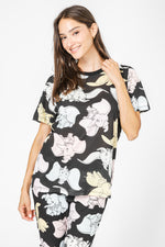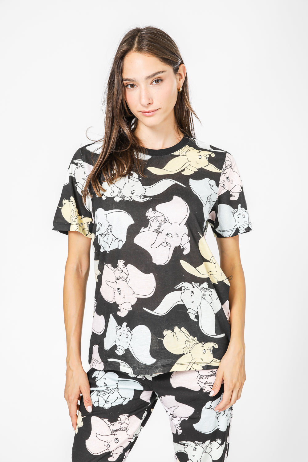 סט חולצה ומכנסיים מבד סינגל ג’רסי קליל בהדפס מתוק של דמבו. חולצה עם צווארון עגול ושרוולים קצרים, ומכנסיים באורך 7/8 עם גומי במותניים, שרוכי קשירה וסיומת מנג’ט.
