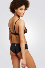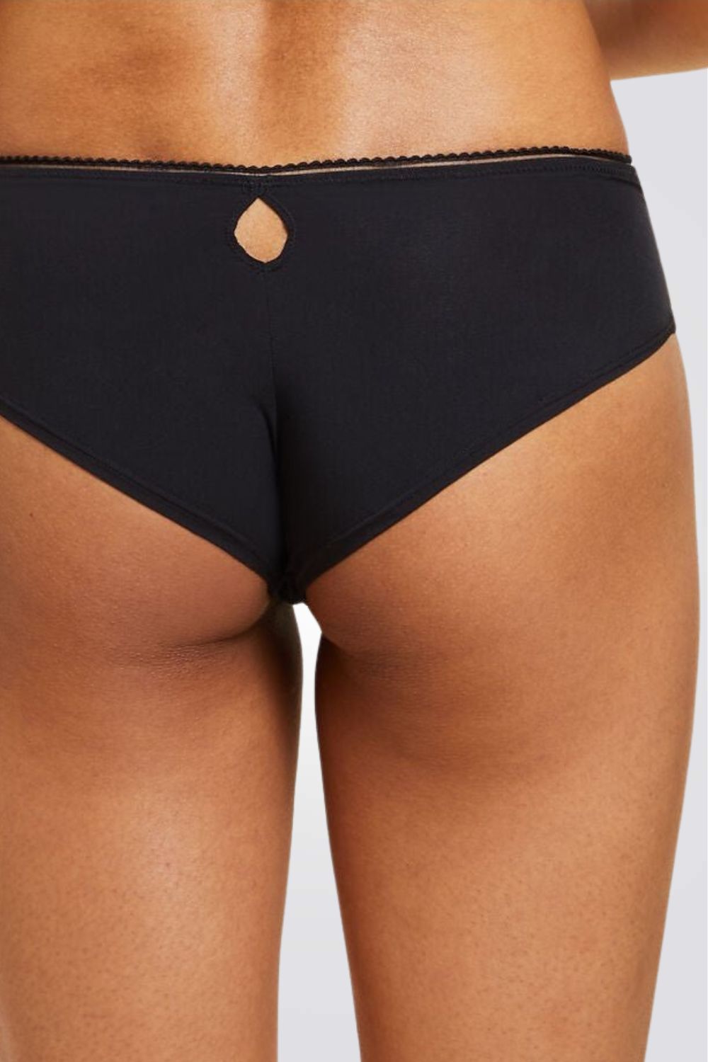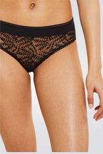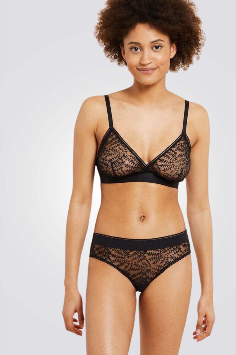 תחתוני היפסטר של המותג ETAM. חלק אחורי מבד מיקרופייבר וחלק קדמי עשוי בד טול ברקמת דוגמת עלים.