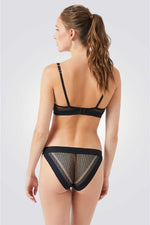 תחתונים לנשים מבית המותג הצרפתי ETAM בגזרת סליפ עשויים בד סינטטי רך בעל עיטורי תחרה מיוחדים ושקפקפים.