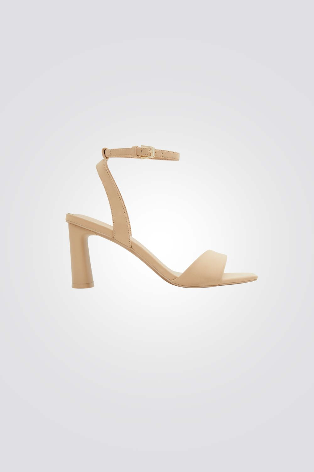 נעלי עקב לנשים מבית המותג CALL IT SPRING, בצבע בז' עם רצועות , עקב מרובע קטן ורצועת סגירה מתכווננת .