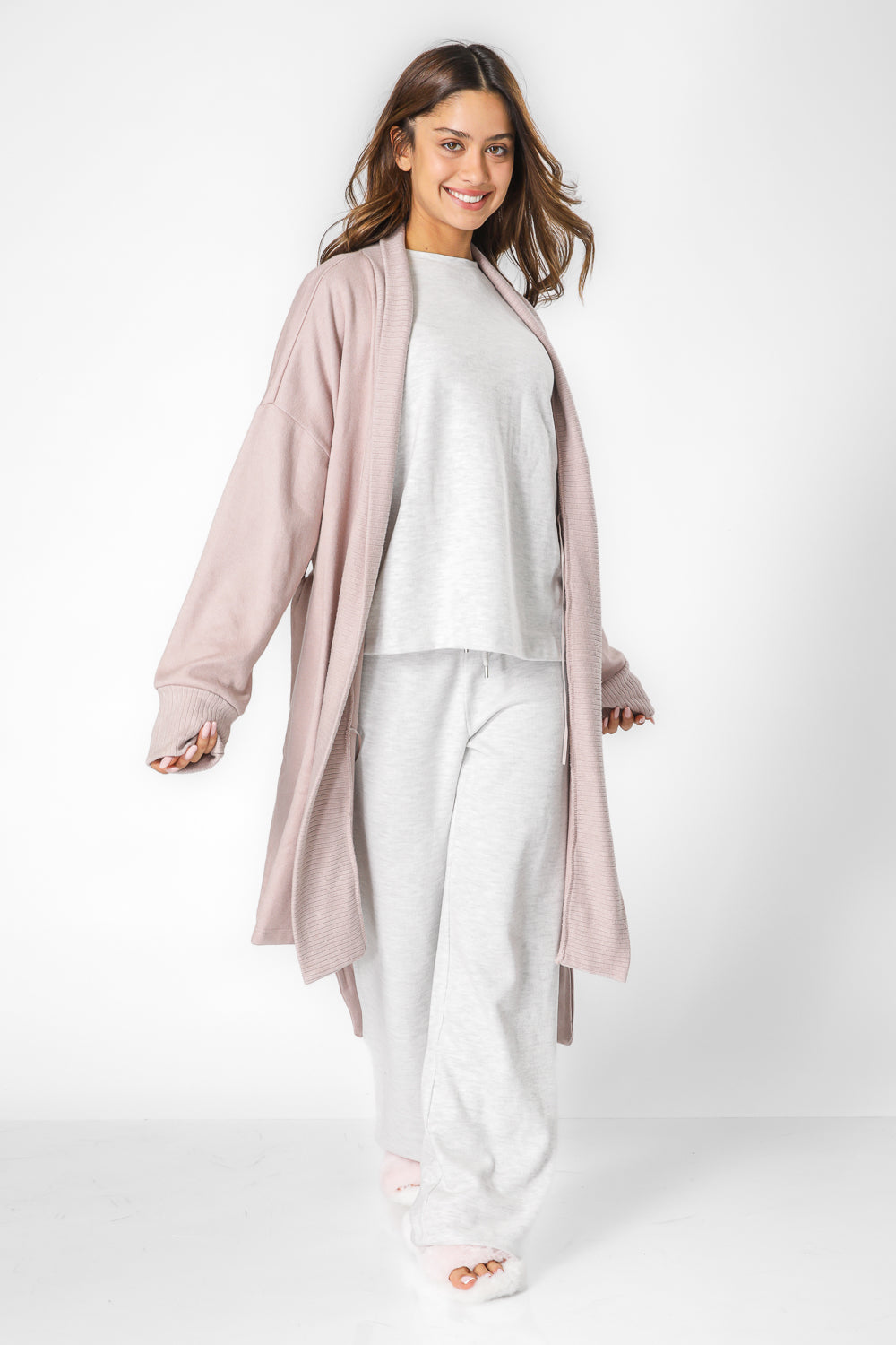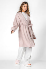 חלוק בית לנשים מבית המותג DELTA העשוי מבד דק ונעים במראה סרוג עם חגורת קשירה ושני כיסים צדדיים.