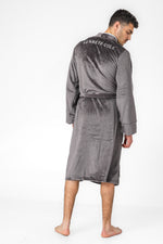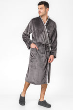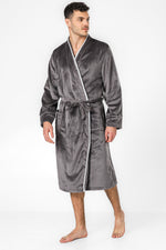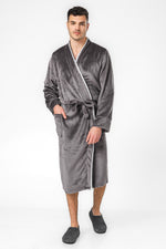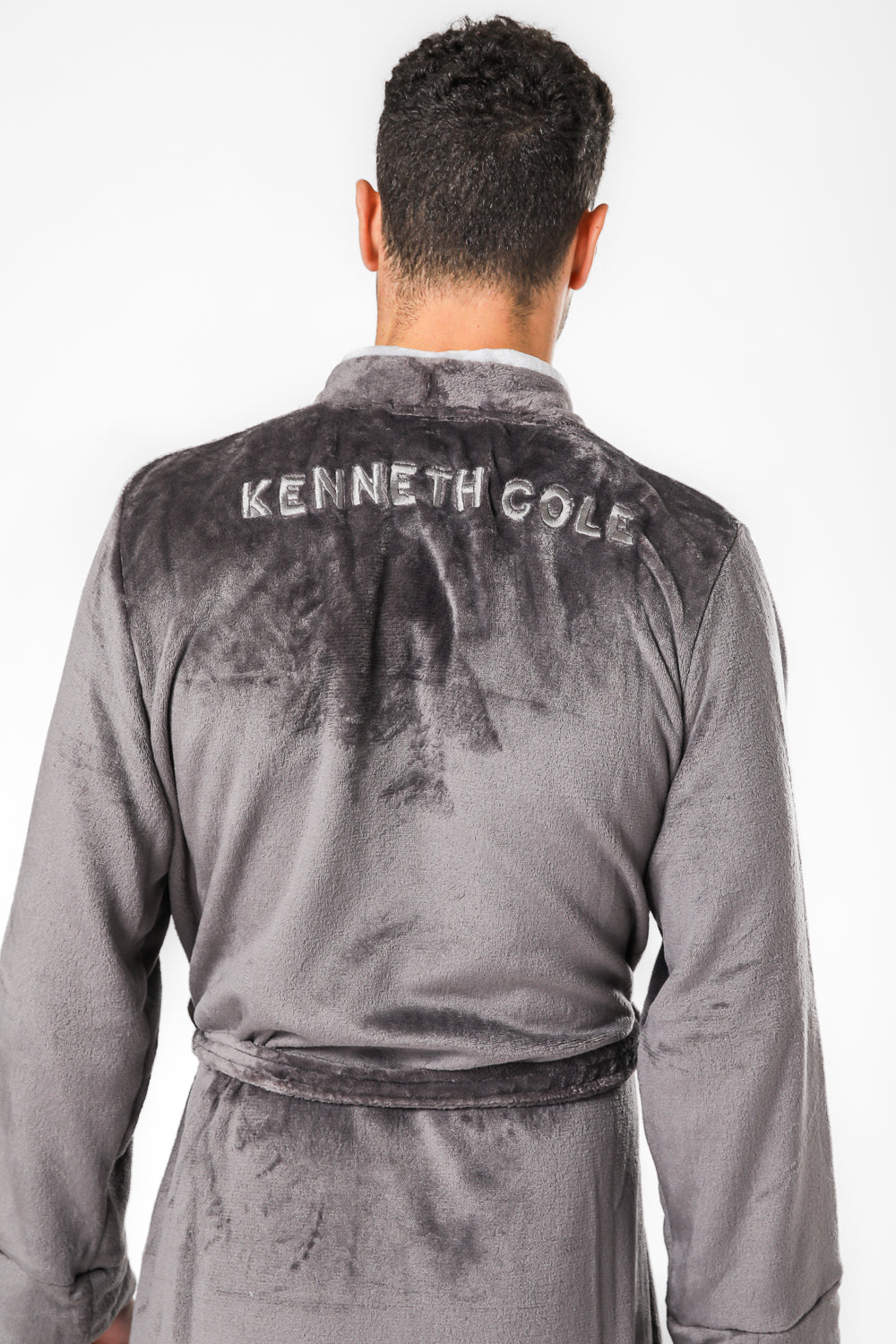 חלוק לגברים מבית המותג KENNETH COLE בצבע אפור כהה, עשוי בד פלאפי חמים ונעים, עם 2 כיסים קדמיים וחגורת קשירה להתאמה אישית.