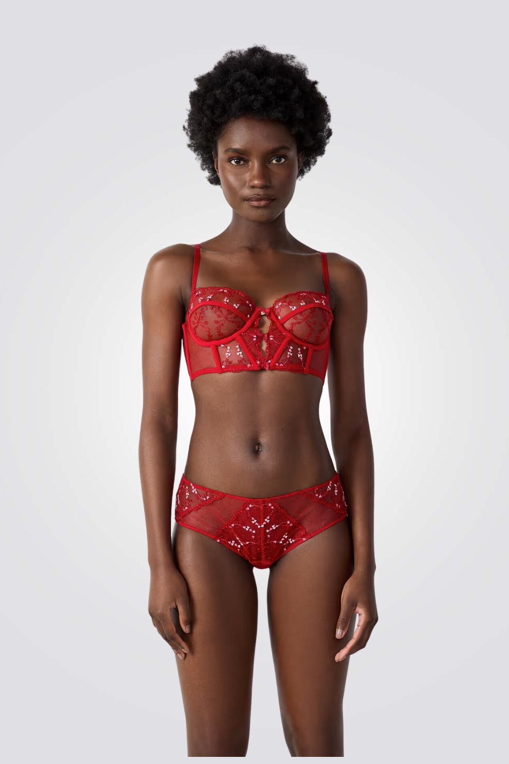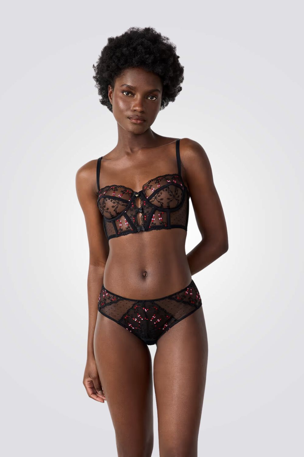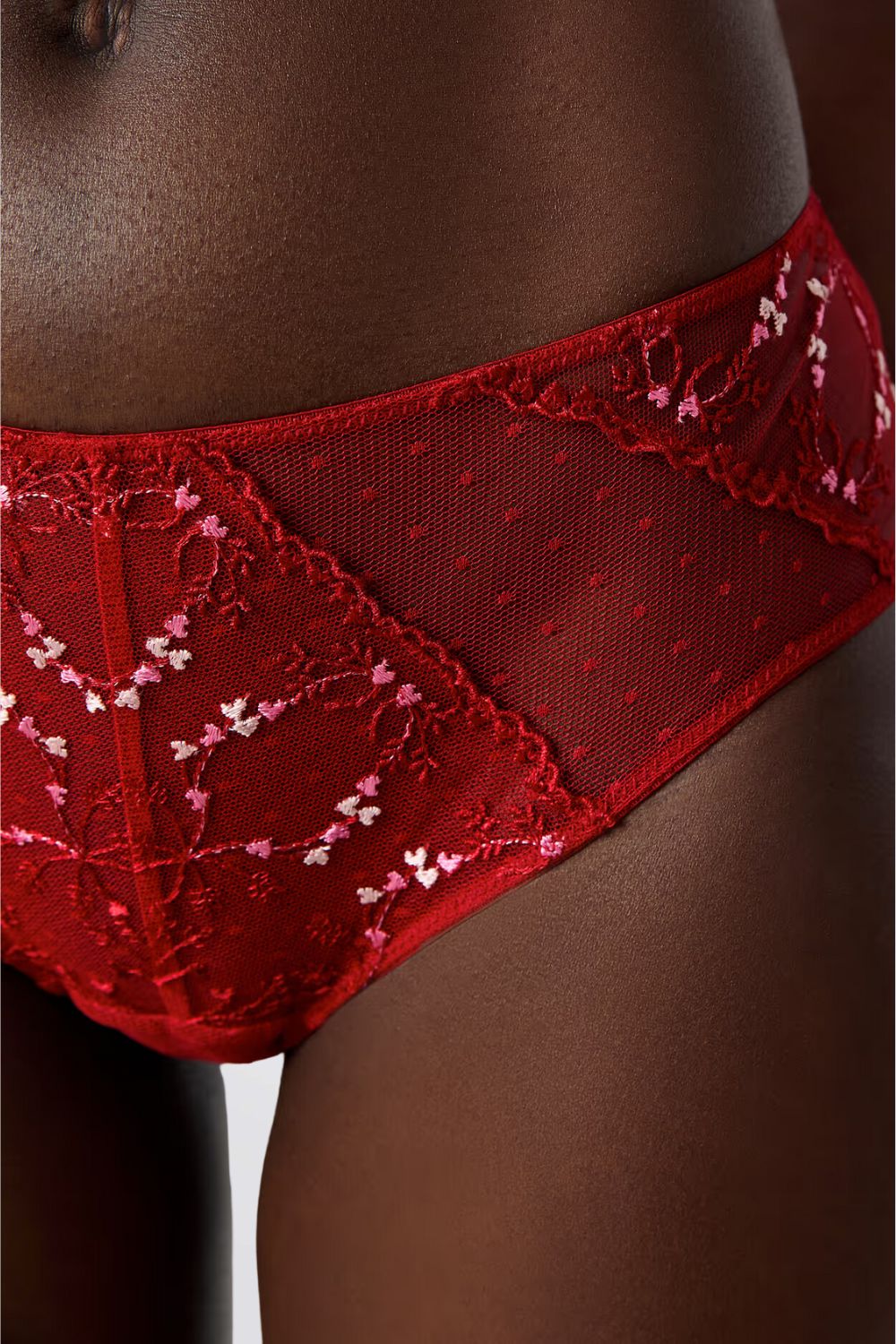 תחתון בגזרת מידי מבית המותג ETAM בשילוב תחרה עדינה עם טול חצי שקוף עם עיטורי לבבות מיוחדים.