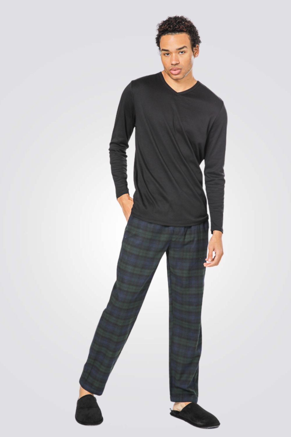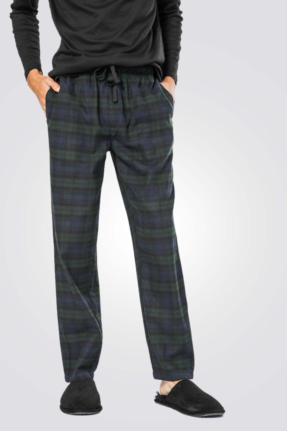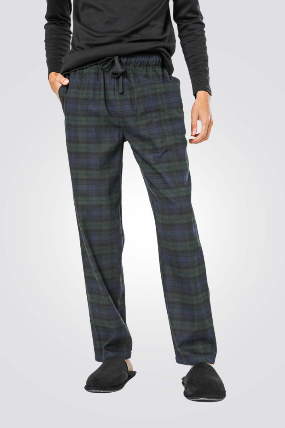 מכנסי פיג’מה מפנקים מבד פלנל מחמם, מכנסיים ארוכים עם גומי במותניים, שרוכי קשירה וכיסים צדדיים לנוחות מירבית.
