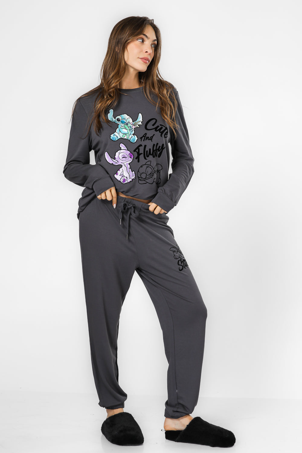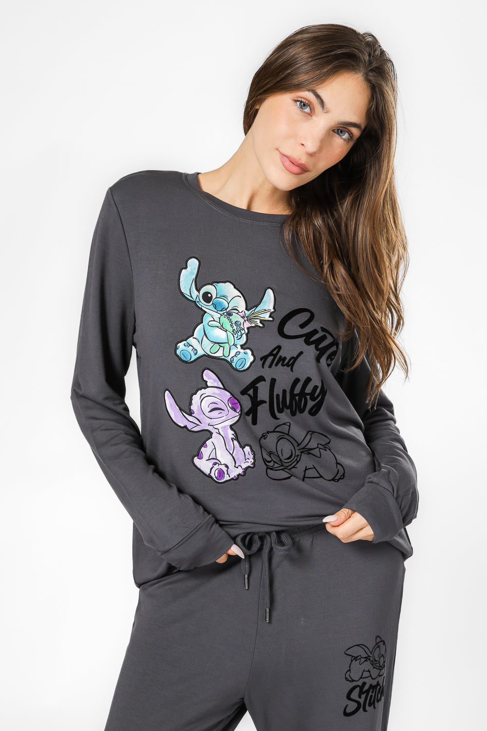 סט פיג'מה דקה מבית המותג DISNEY העשויה מבד פרנץ’ טרי רך ונעים עם הדפס של סטיץ’ ואנג’ל. חולצה עם צווארון עגול, שרוולים ארוכים וסיומת מנג’ט ומכנסיים ארוכים עם גומי וכיסים.