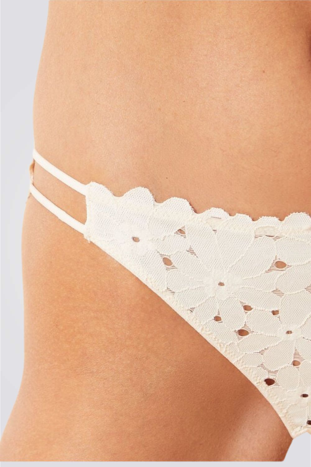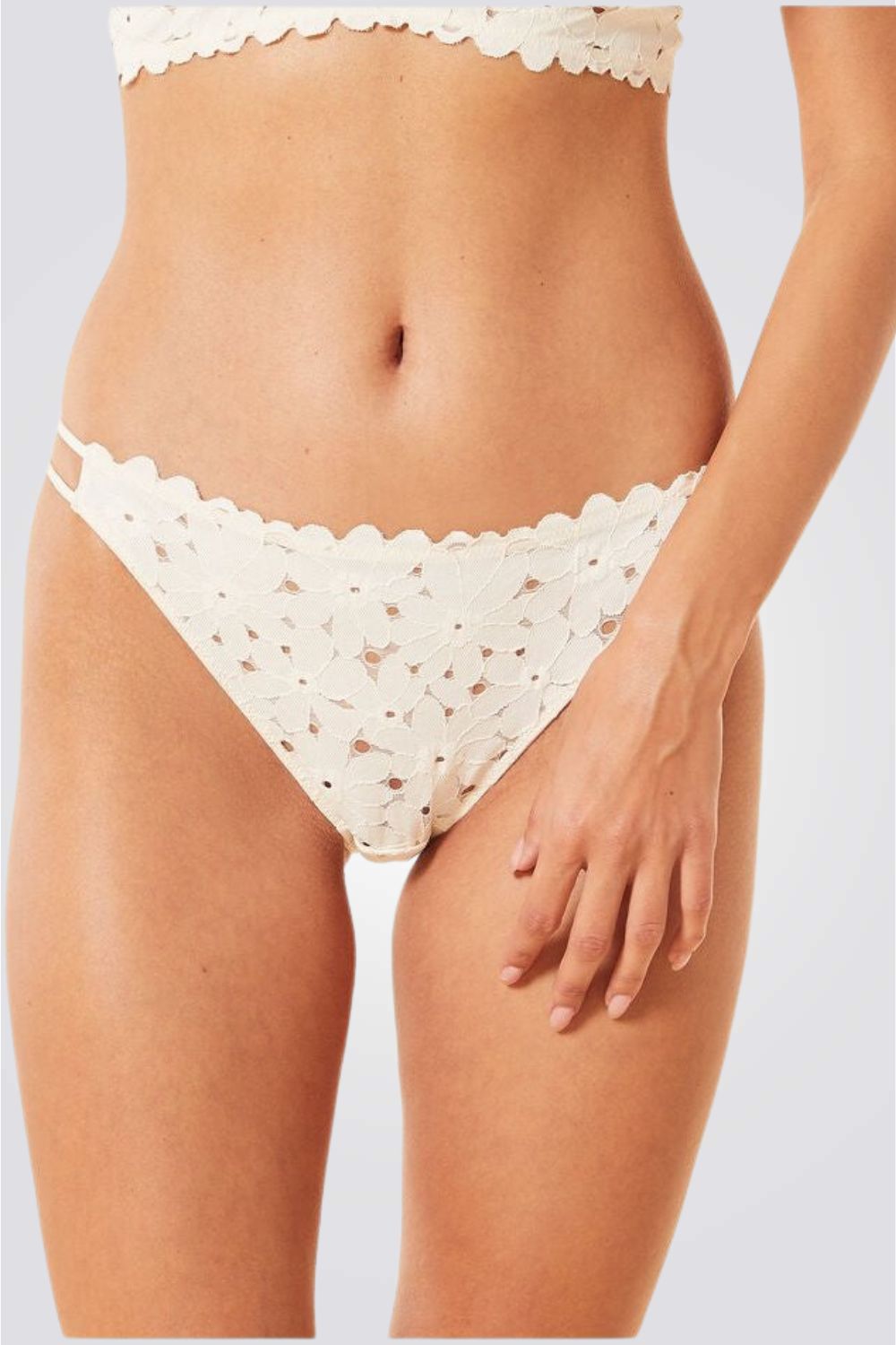תחתוני ביקיני תחרה פרחונית ECLATANTE קרם