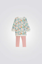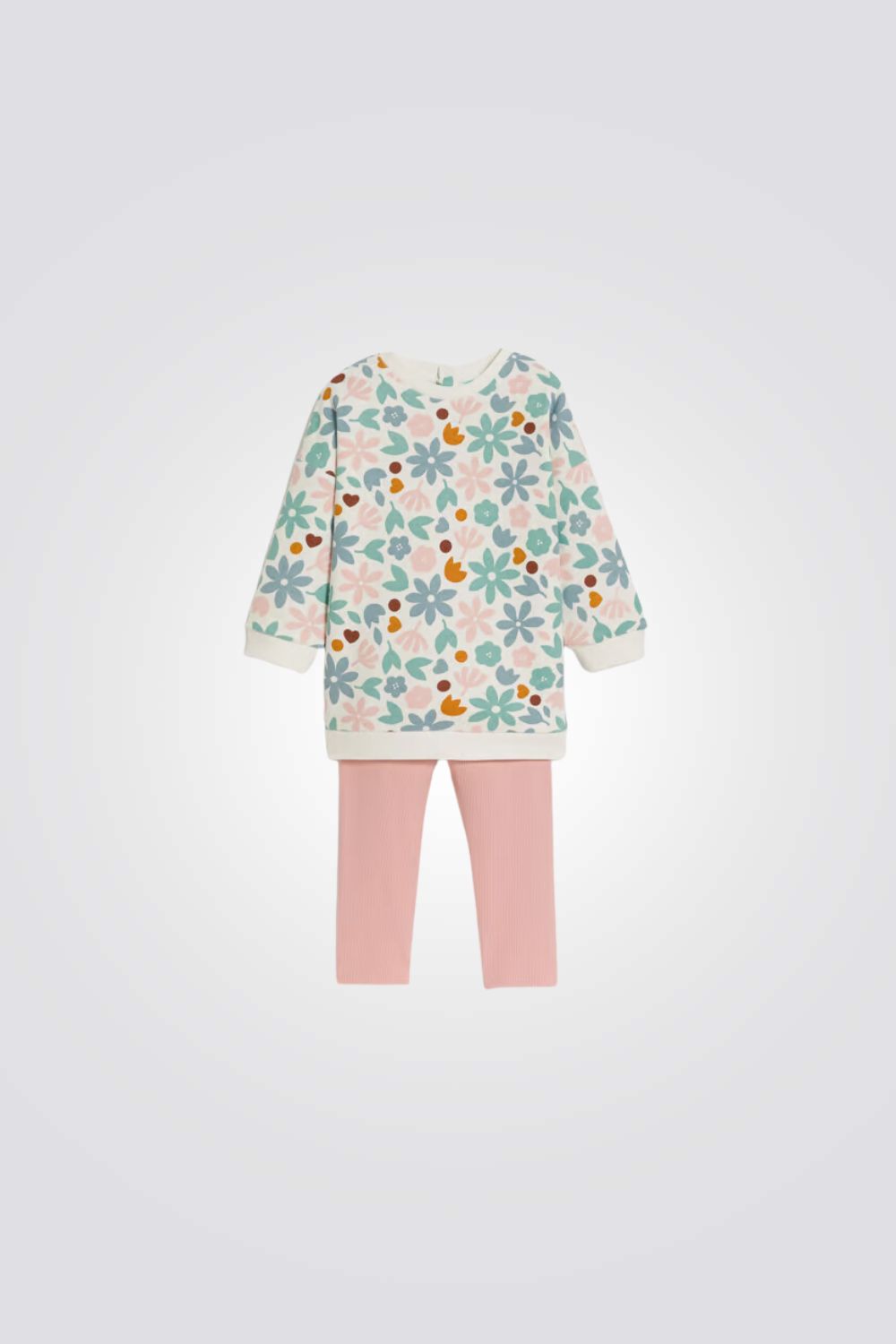 חליפה של סווטשירט ומכנסיים לתינוקות מבית המותג OBAIBI, סווטשירט עם הדפס פרחוני ומכנסיים בצבע ורוד עם מותן אלסטית, עשוי מבד רך ונעים .