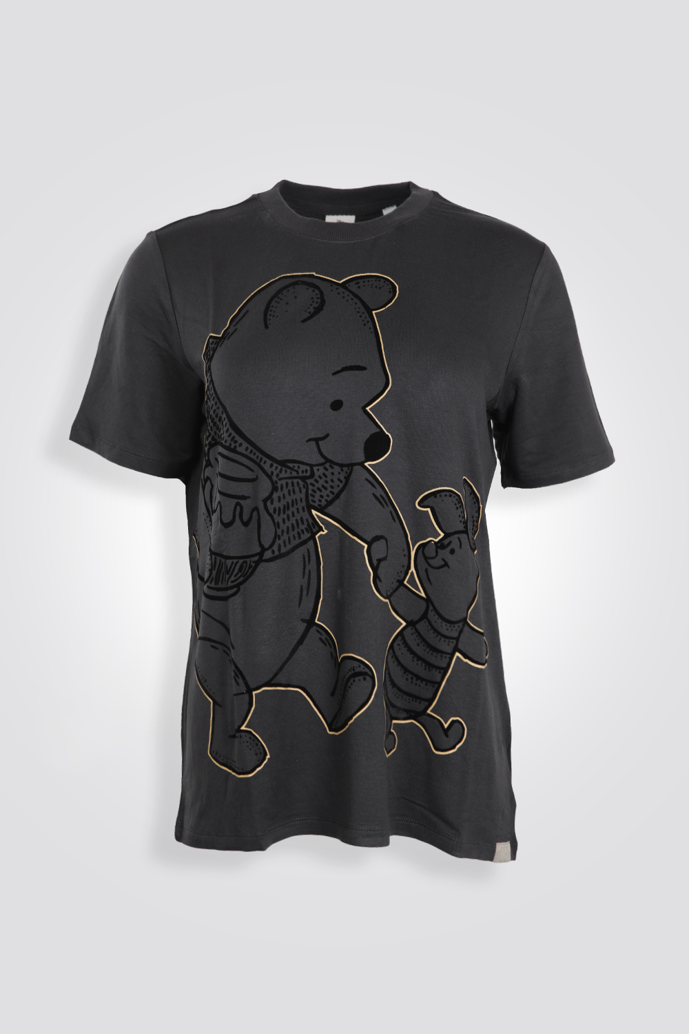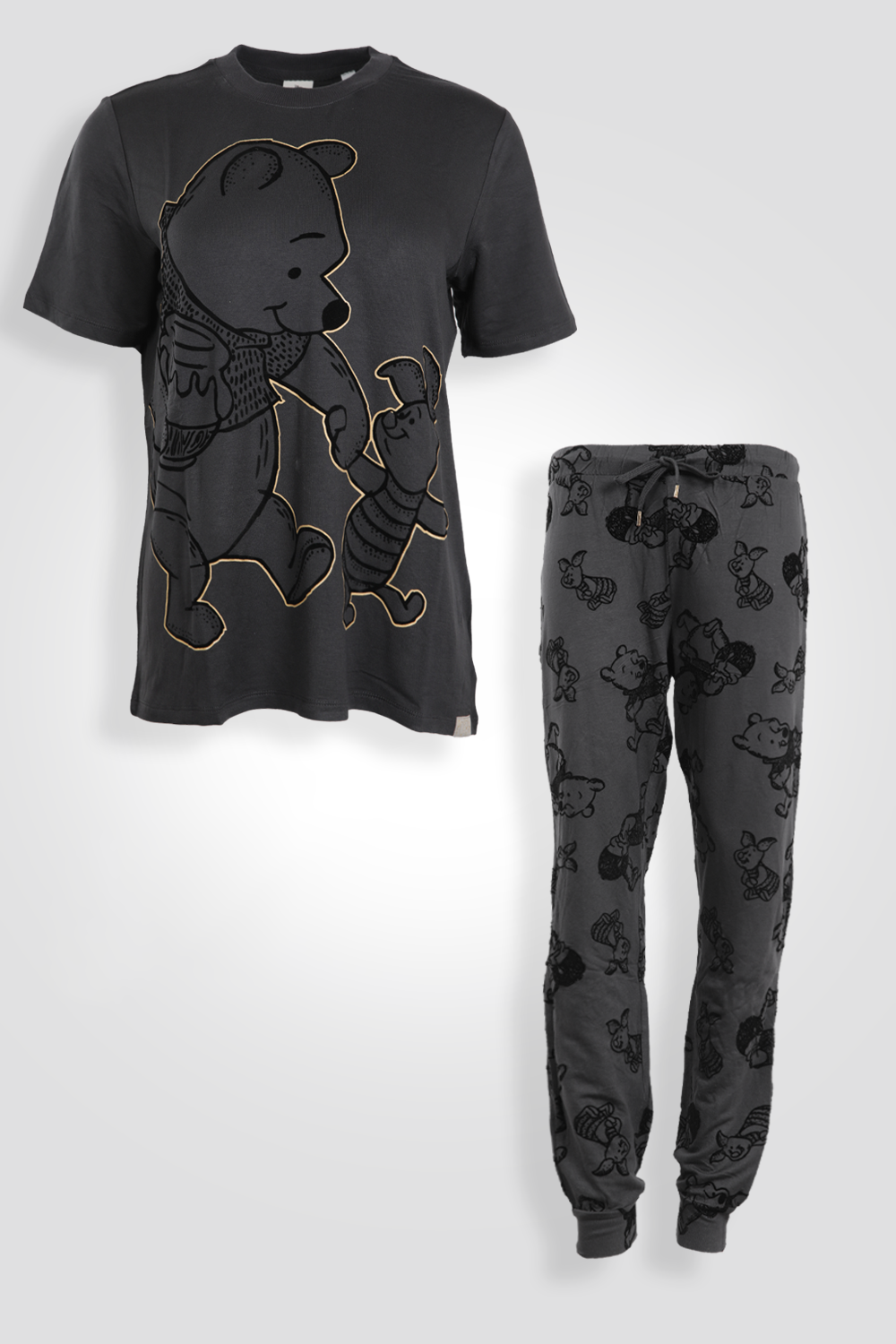 סט פיג’מה קצרה מבית המותג DELTA העשויה מבד פרנץ’ טרי נעים במיוחד בהדפס של פו הדב וחזרזיר. חולצה עם צווארון עגול ושרוולים קצרים ומכנסיים ארוכים תואמים עם גומי במותניים.