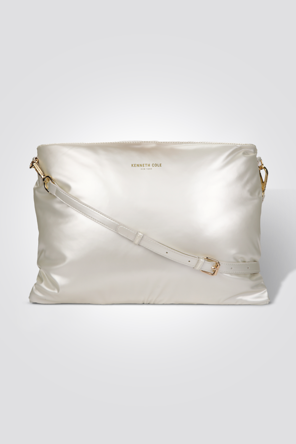 תיק צד מבית המותג KENNETH COLE, אופנתי עם מראה מטאלי ,עם שני תאים וסגירת רוכסן, ורצועת צד .