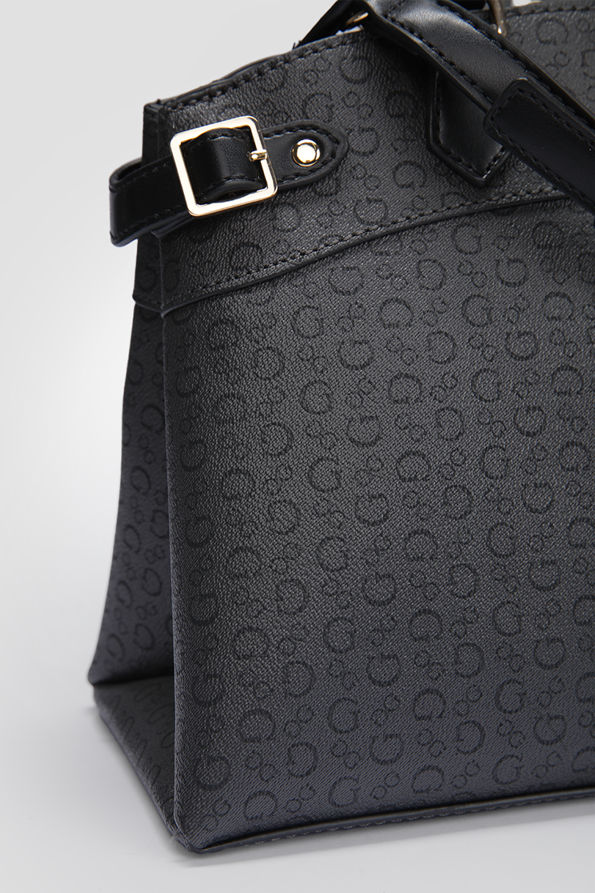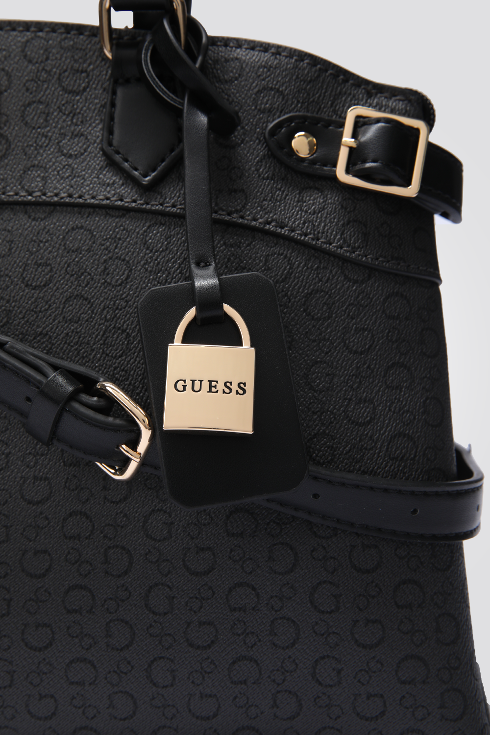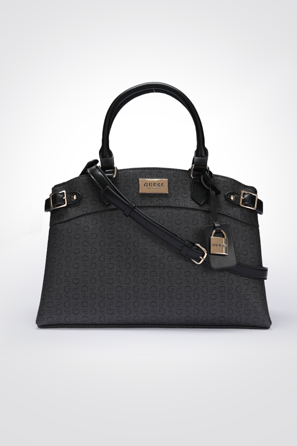 תיק צד לנשים מבית המותג GUESS, מבד דמוי עור, בעל רצועות נשיאה קצרות, רצועת כתף מתכווננת, תא מרכזי עם סגירת רוכסן, כיסים פנימיים לאחסון נוסף ולוגו בחזית.