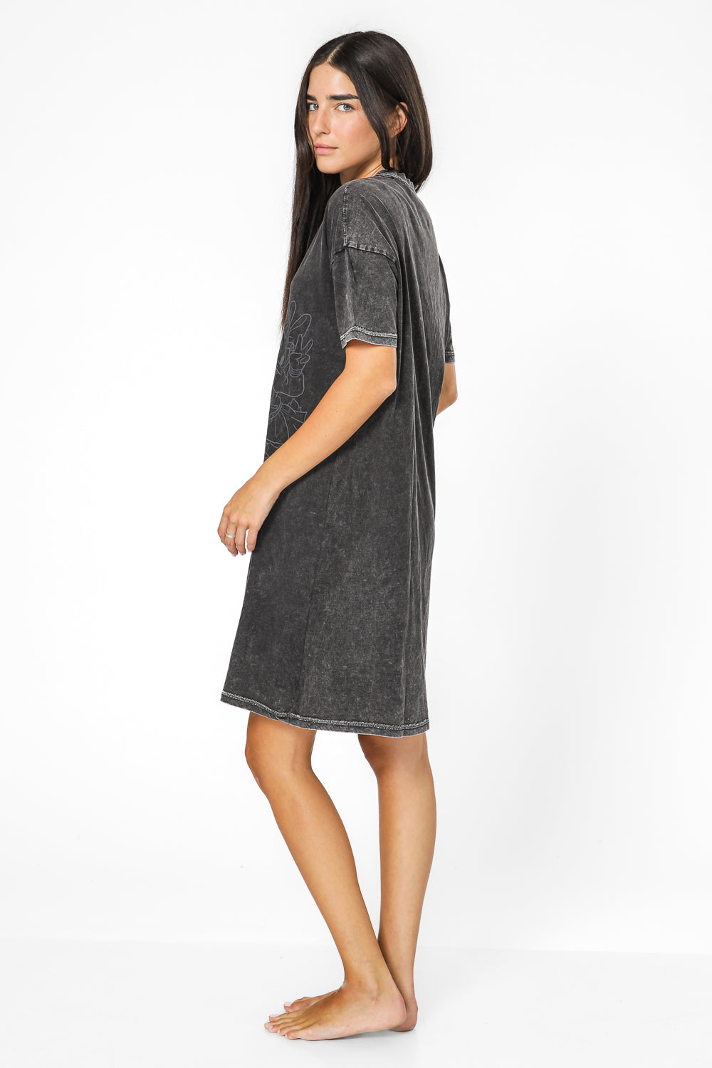 כותונת בגזרה משוחררת מבית המותג DELTA העשויה מבד סינגל ג’רסי נעים עם הדפס דייזי במראה וינטג’, עם שרוולים קצרים ומפתח צוואר עגול.