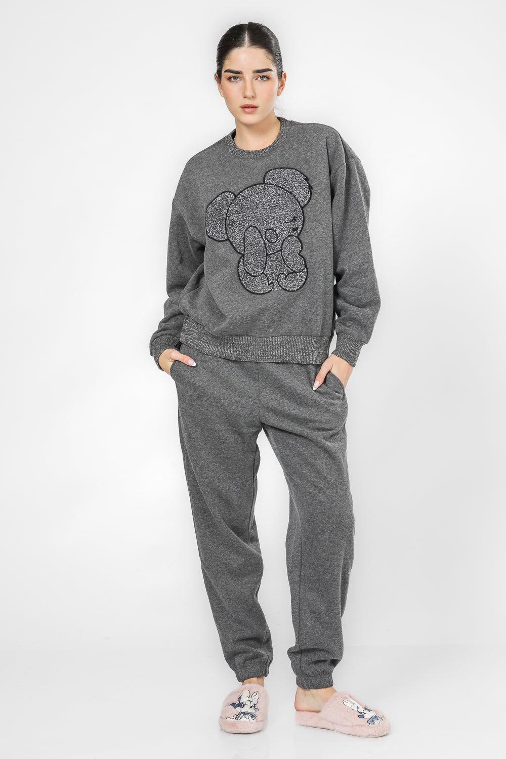 סט פיג’מה מבד פוטר נעים ורך בהדפס של קואלה מתוקה. חולצה עם צווארון עגול ושרוולים ארוכים בסיומת מנג’ט, מכנסיים ארוכים עם גומי במותניים, שרוכי קשירה וסיומת מנג’ט.