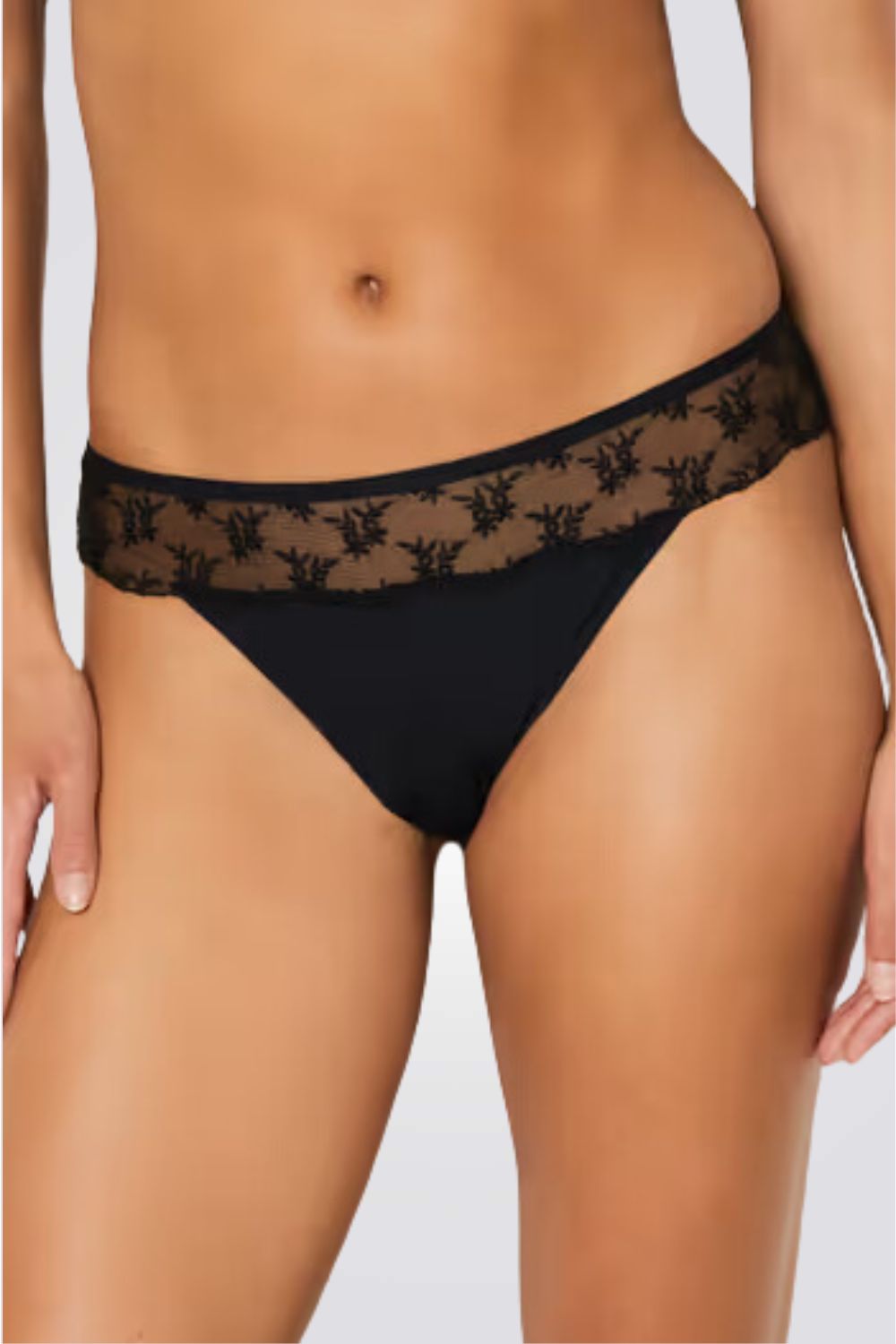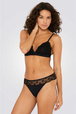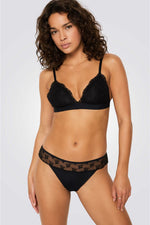 תחתוני נשים מבית המותג הצרפתי ETAM בגזרת טנגה, בעלי בטנה מכותנה ועם עיטורי תחרה רקומה ועדינה בסגנון פרחוני.