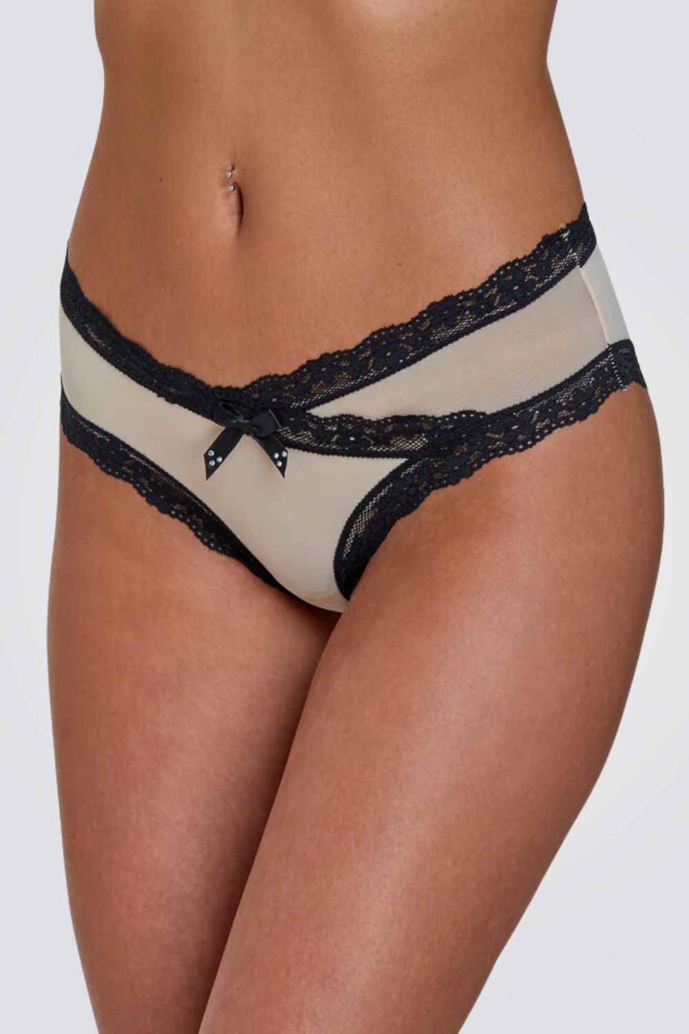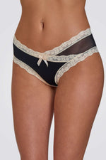 תחתוני היפסטר מבית המותג BONITA DE MAS, בגזרה קלאסית ונוחה בשילוב תחרה עדינה פפיון דקורטיבי מקדימה, מגיע בצבעי שחור, שמנת וניוד.