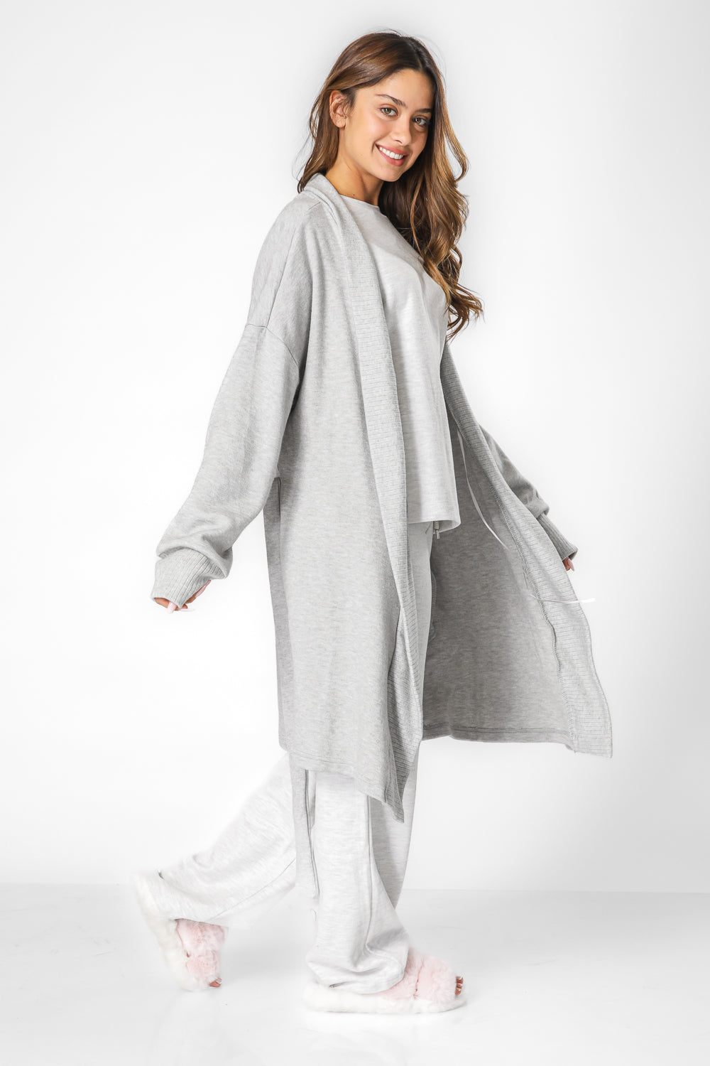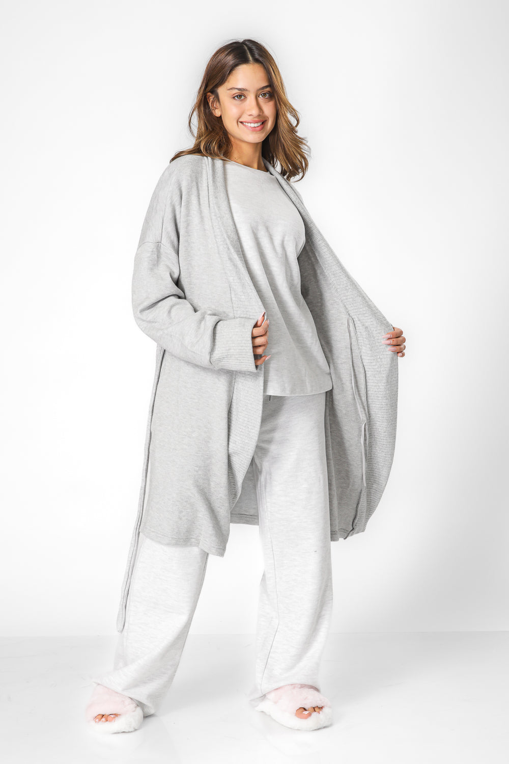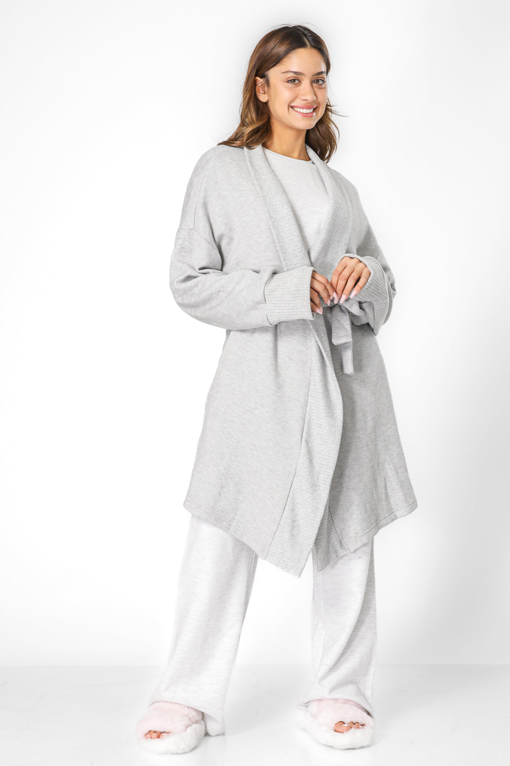 חלוק בית מפנק מבית המותג DELTA במראה סריג עם חגורת קשירה וכיסים.