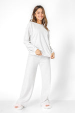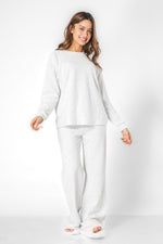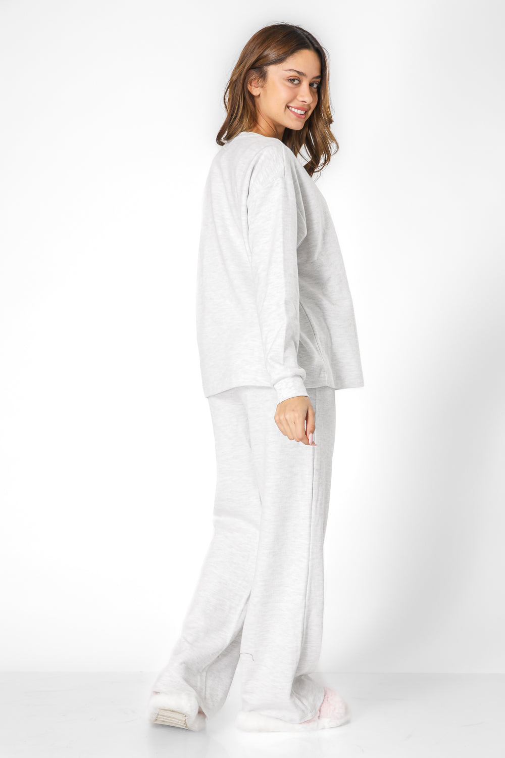 סט פיג'מת מעבר מבית המותג DELTA העשויה מבד אינטרלוק מוברש נעים ודק. חולצה עם צווארון עגול ושרוולים ארוכים ומכנסיים ארוכים בגזרה ישרה עם גומי במותניים ושרוכי קשירה.