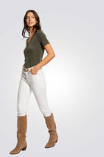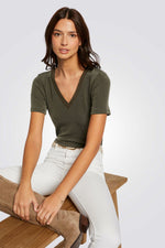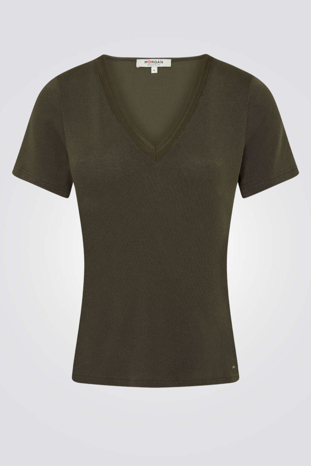 טישירט מבית המותג MORGAN, טישירט בעלת שרוולים קצרים וצווארון וי, גזרה ישרה ונוחה במיוחד, סופר אוורירית ומתאימה בדיוק לעונה זו.