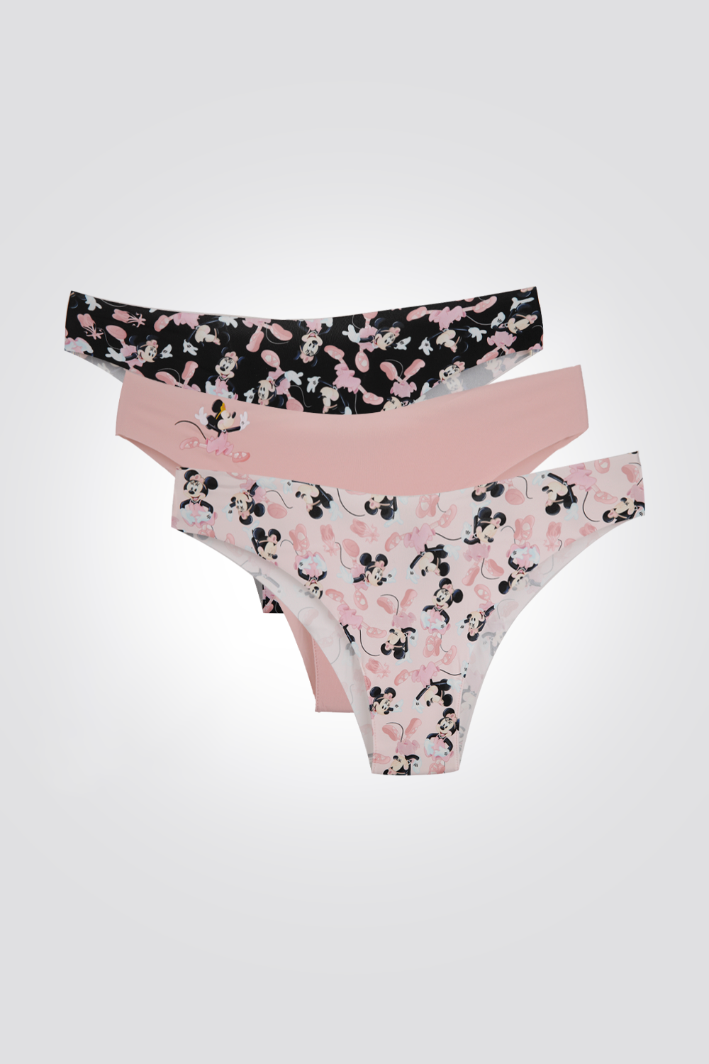 מארז תחתוני טנגה מבית המותג DELTA ללא תפר ובהדפסים מתוקים של מיני מאוס בשלושה גוונים שונים.