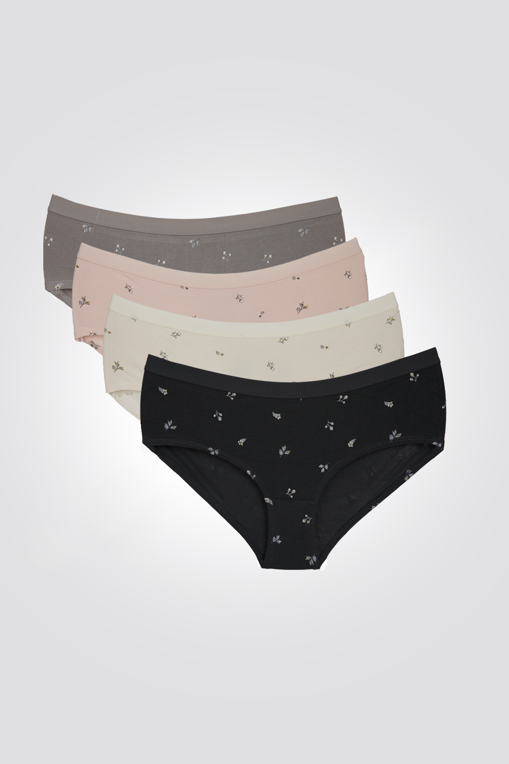 מארז רביעיית תחתונים מבית המותג DELTA העשויים מבד סינגל ג’רסי נעים, בגזרת היפסטר בהדפסי פרחים.