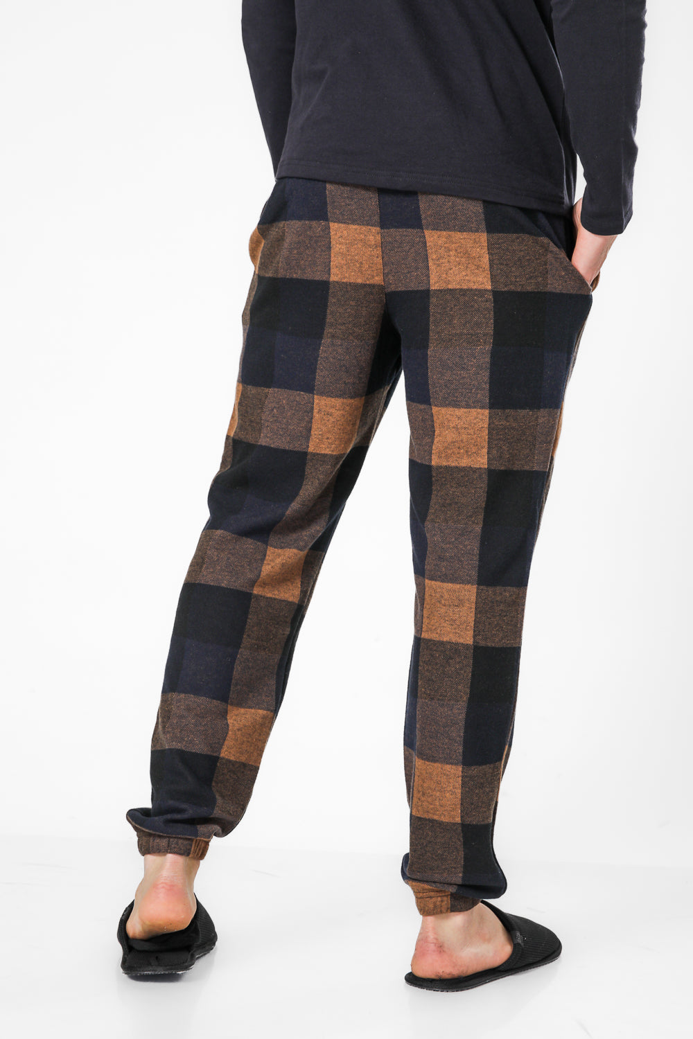 סט פיג’מה אינטרלוק ופלנל כחול נייבי