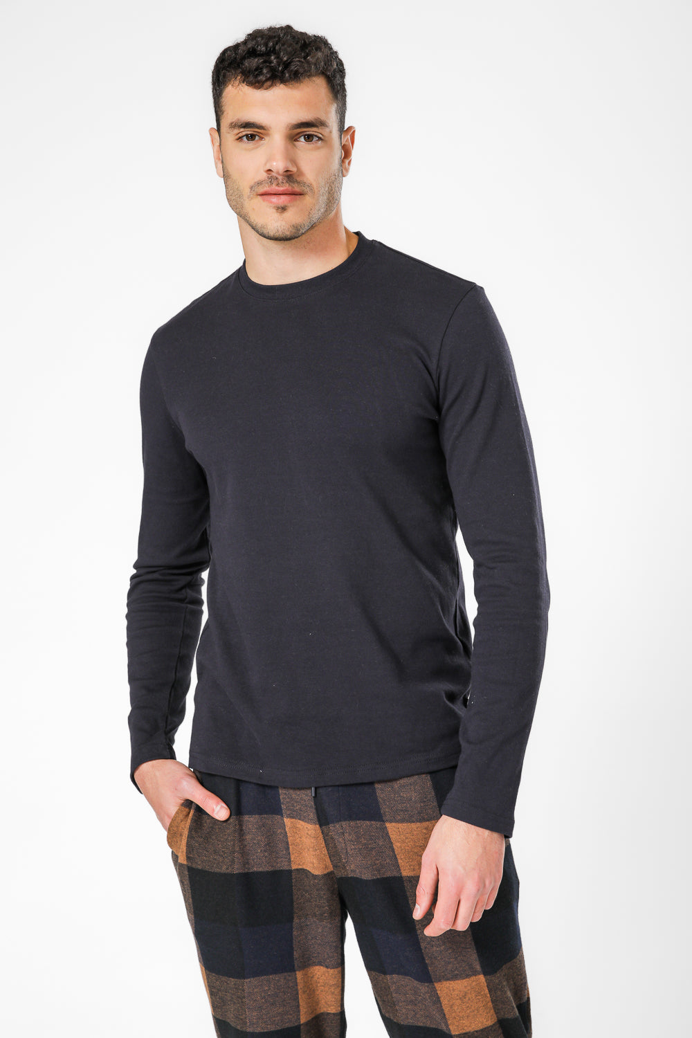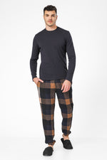סט פיג'מה קליל ונעים מבית המותג DELTA המורכ מחולצה מבד אינטרלוק נעים, צווארון עגול ושרוולים ארוכים ומכנס ארוך מבד פלנל מחמם עם כיסים, שרוכי הידוק וסיומת גומי.