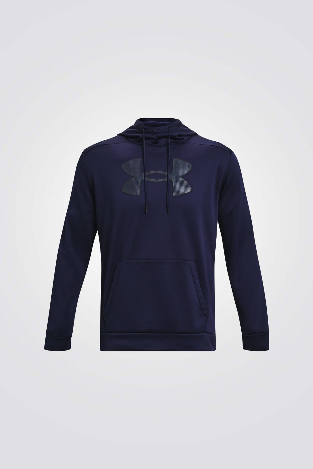 סווטשירט לגברים מבית המותג UNDER ARMOUR בצבע נייבי עם לוגו רקום בחזית, בעל בד נושם ונמתח עם שכבה פנימית רכה לוכדת חום לנוחות מקסימלית. בעל צווארון גבוה וכובע קפוצ'ון בשילוב שרוכים, כיס קנגרו קדמי.