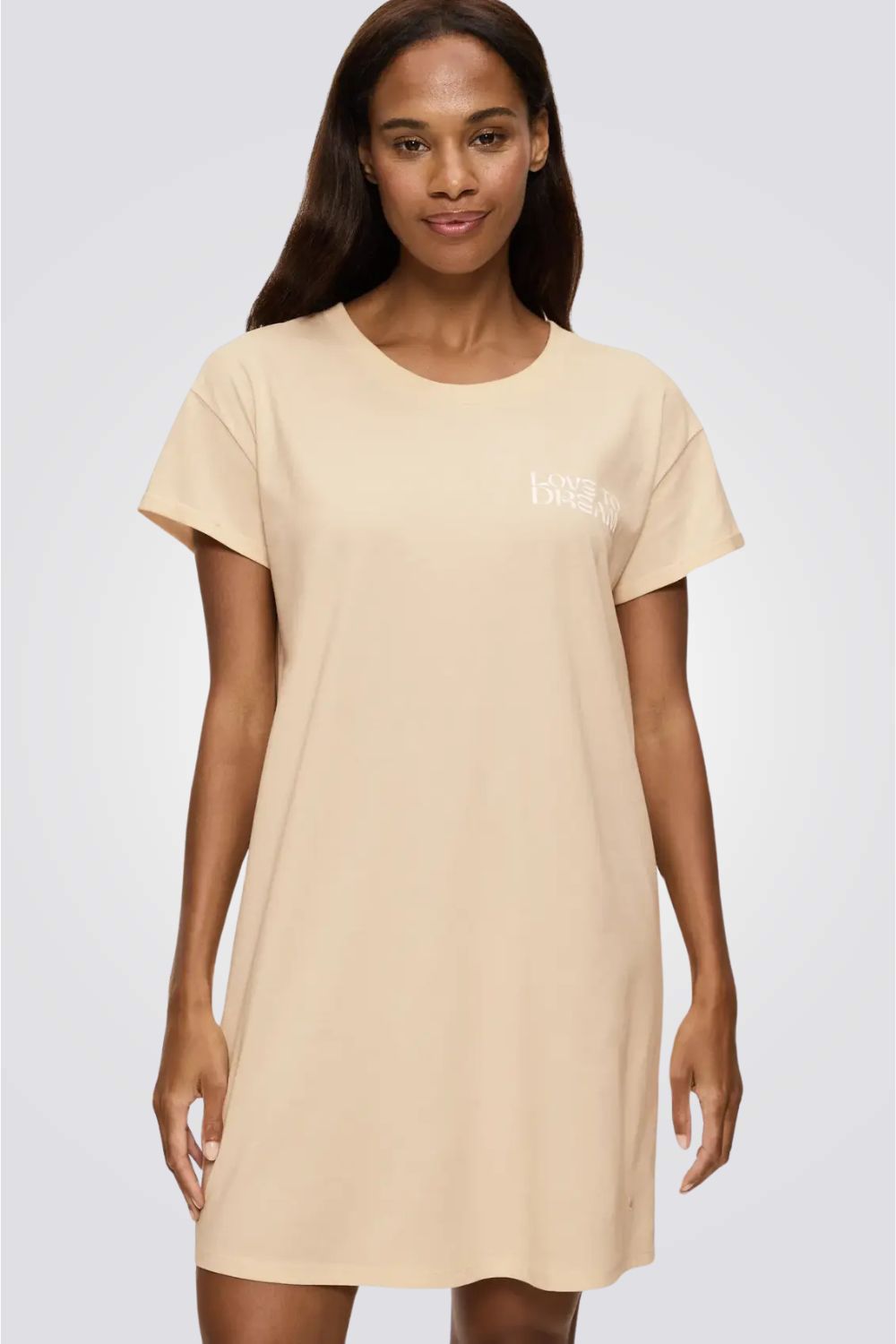 כותונת לילה מבית המותג TRIUMPH העשויה מבד כותנה רך ונושם עם שרוולים קצרים ומכפלת מעוקלת.