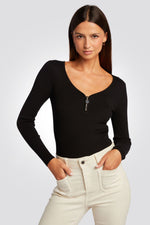 סריג וי ריבס עם רוכסן מקדימה בשחור