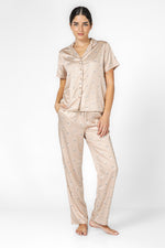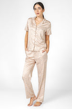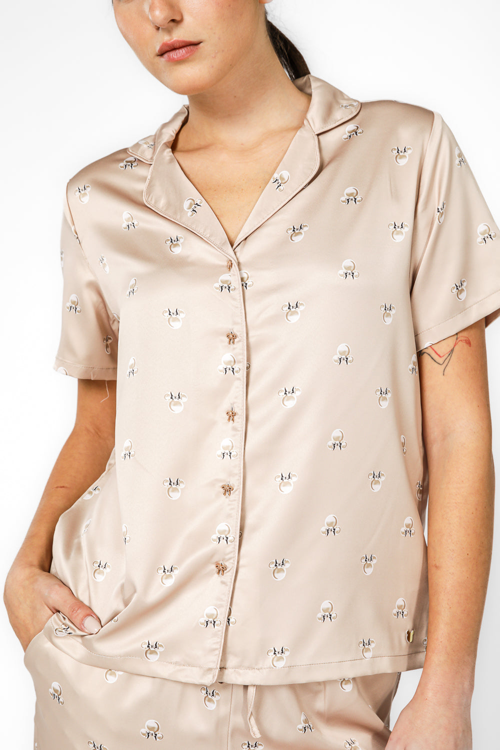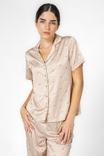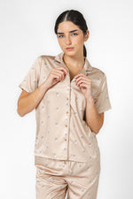 סט פיג'מה מכופתר סאטן מיני בצבע NUDE