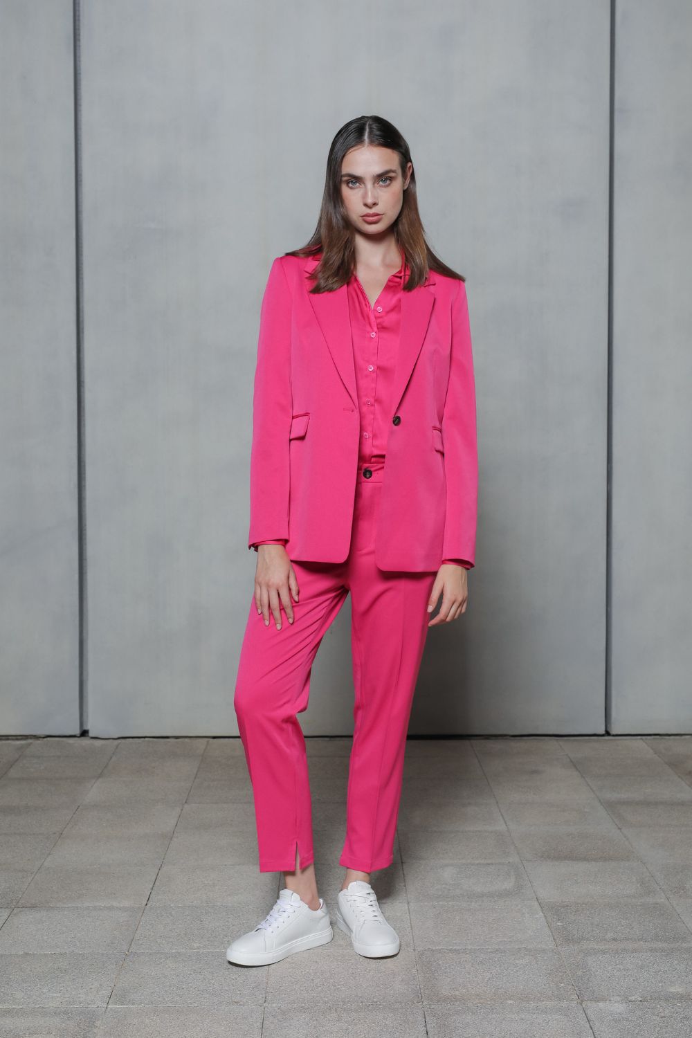 חולצה מכופתרת מבית המותג KENNETH COLE לנשים, עשויה מבד קליל ונוח, במראה סאטן מבריק המעניק מראה אלגנטי, בעלת סגירת כפתורים קדמית וצווארון קלאסי ומחשוף וי מחמיא.