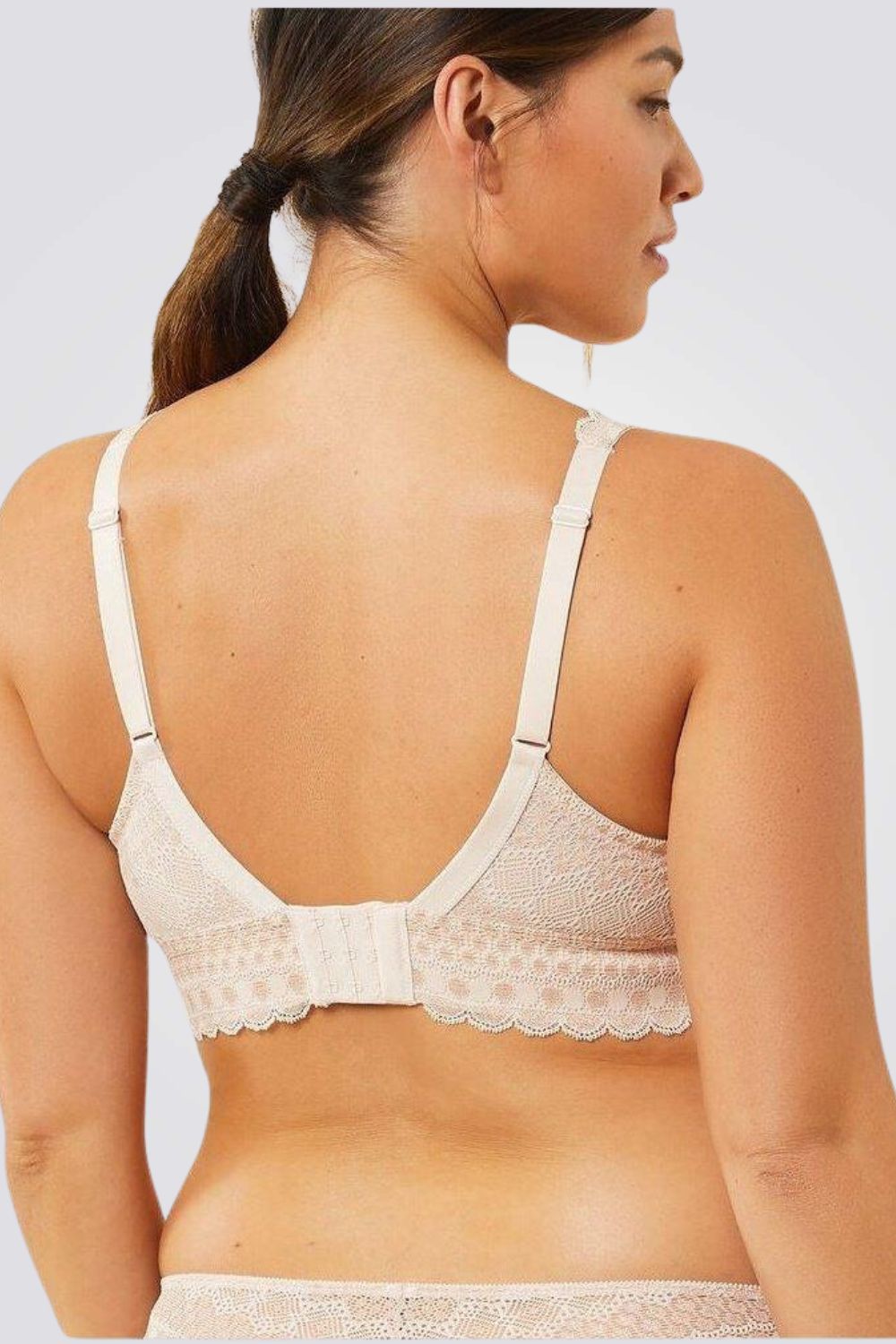חזייה מבית המותג הצרפתי ETAM, עשויה תחרה עדינה בדוגמה גרפית. הקאפים בעיצוב משולשים עם ריפוד קל הניתן להסרה, ללא ברזל, עם פס תחרה רחב תומך מתחת לחזה, כתפיות מתכווננות וסגירת קרסים אחורית. מתאימה גם למידות קאפ גדולות.