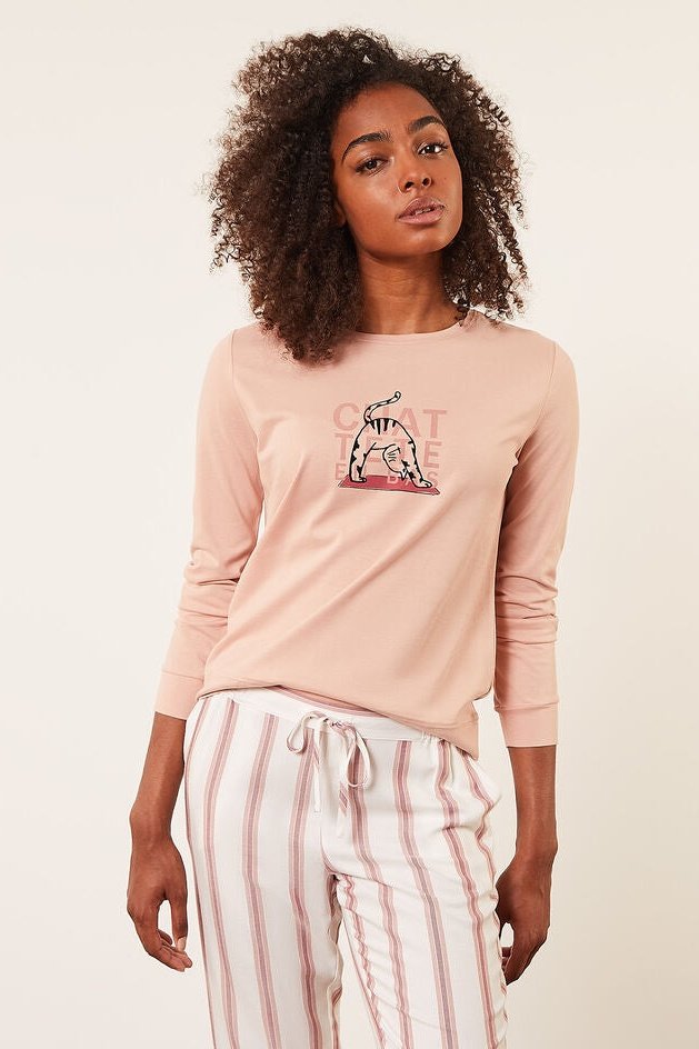 חולצת פיג'מה חתול יוגה YOCAT ורוד