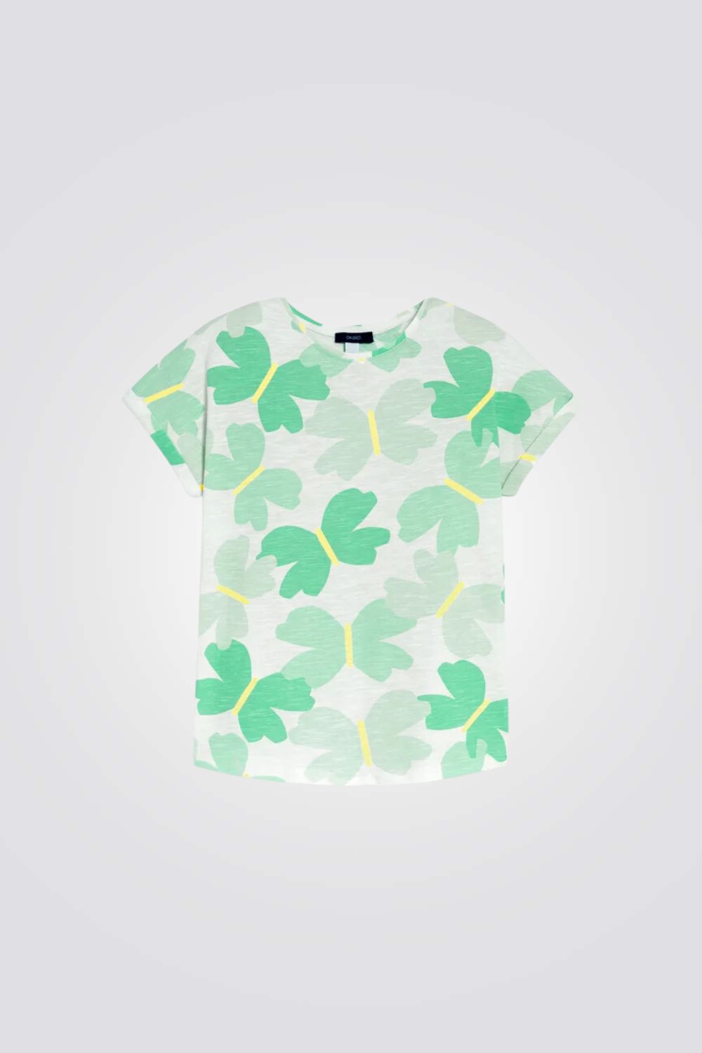 טישירט לילדות עם הדפס פרפרים ירוקים